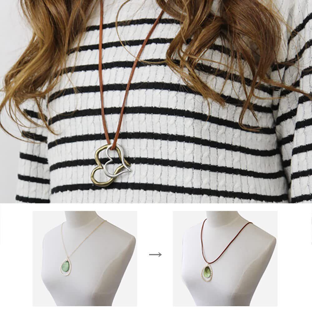 お手持ちのチェーンネックレスのトップを革紐に付け変えれば、雰囲気が変わってコーデによってアレンジが楽しめます