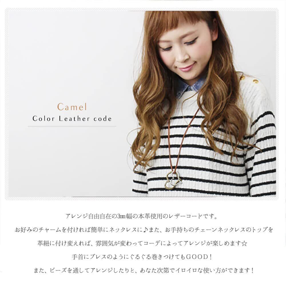 アレンジ自由自在の3mm幅の本革使用のレザーコードです。お好みのチャームを付ければ簡単にネックレスに