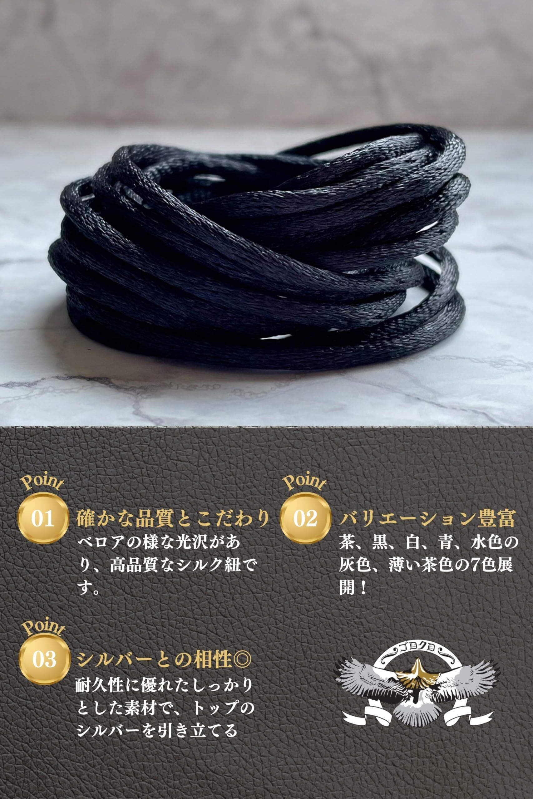 ゴロクロ全5色 1メートル シルク製 つやつや オリジナル アクセサリー ネックレス カスタム パーツ 黒色