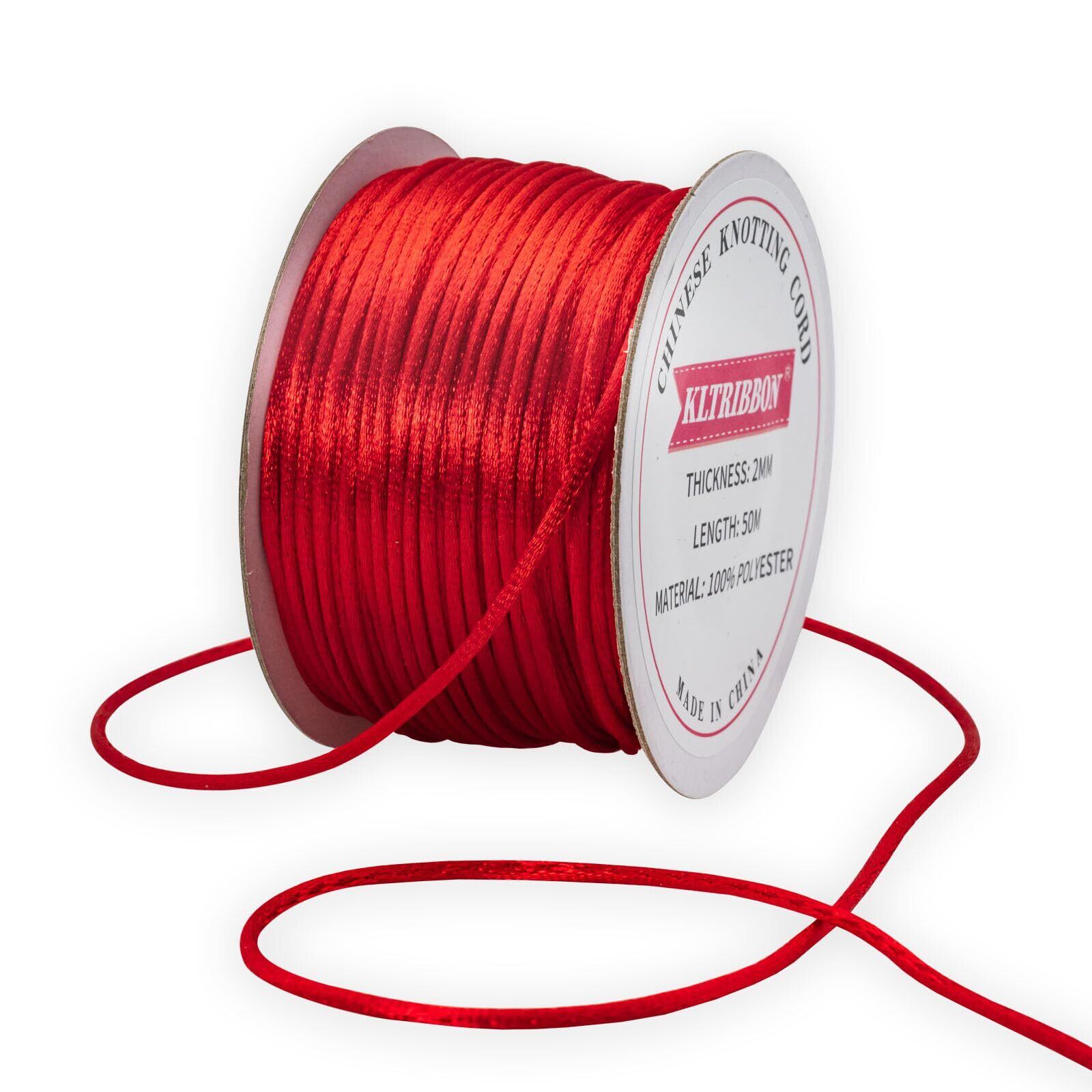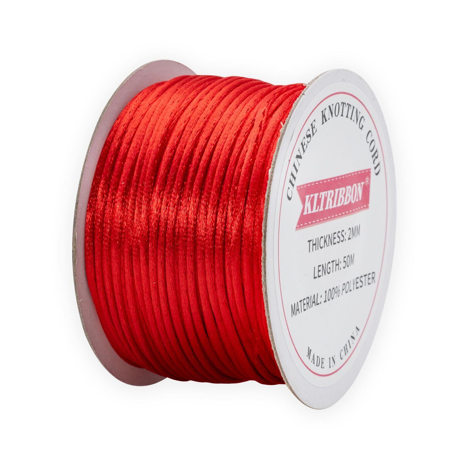 2mm レッド ラットテールコード 中国結び紐 - ブレスレット ネックレス ジュエリー製作 マクラメ 装飾用 50m