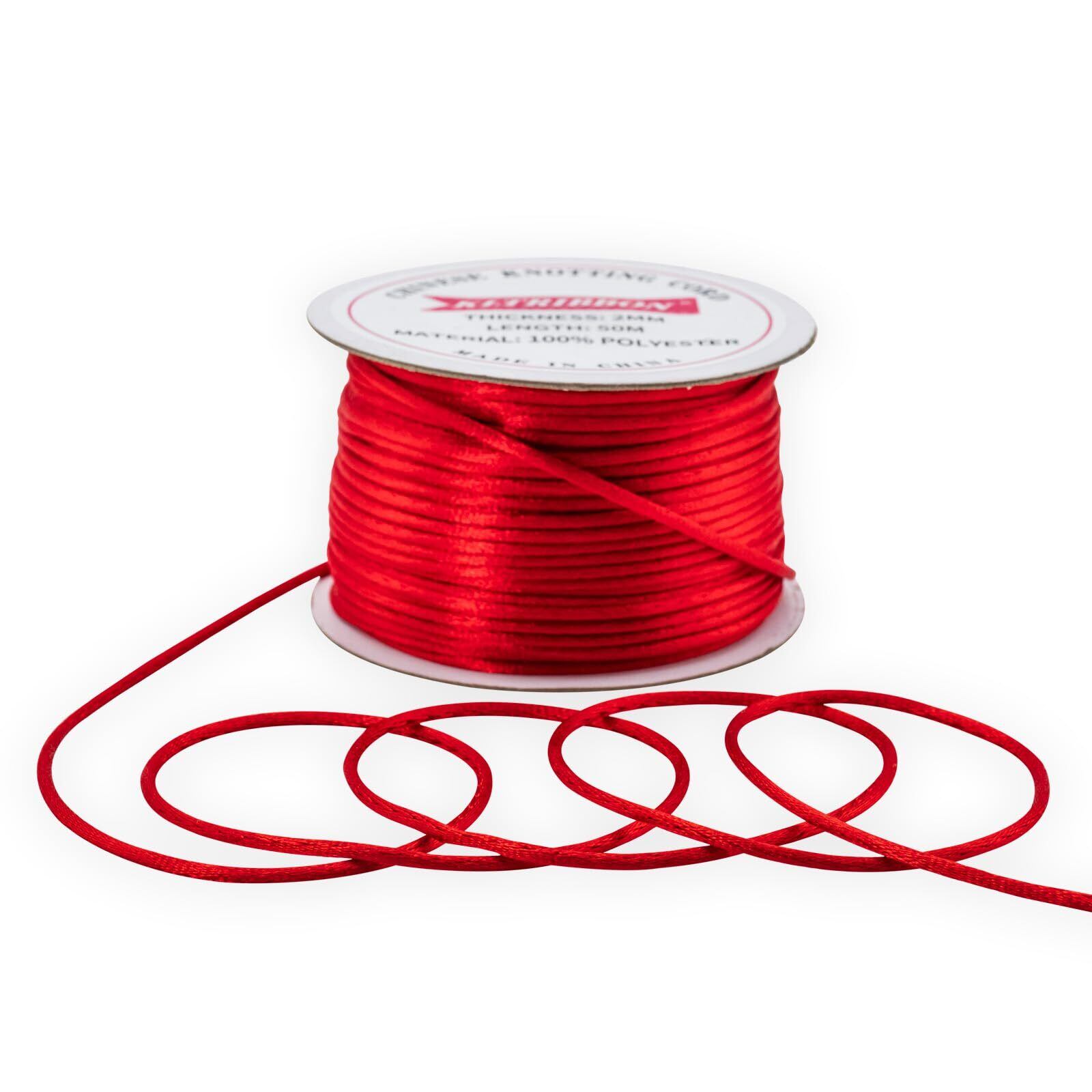 【特価商品】2mm レッド ラットテールコード 中国結び紐 - ブレスレット ネックレス ジュエリー製作 マクラメ 装飾用 50m