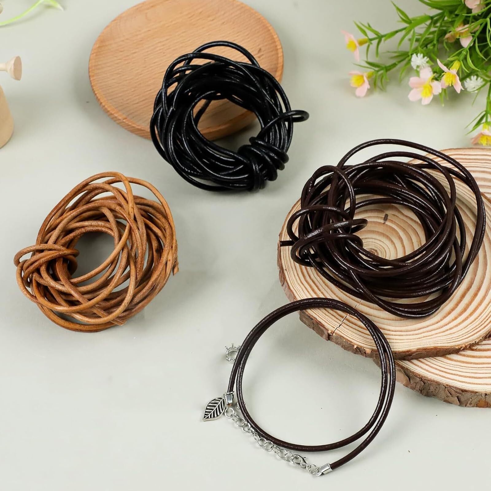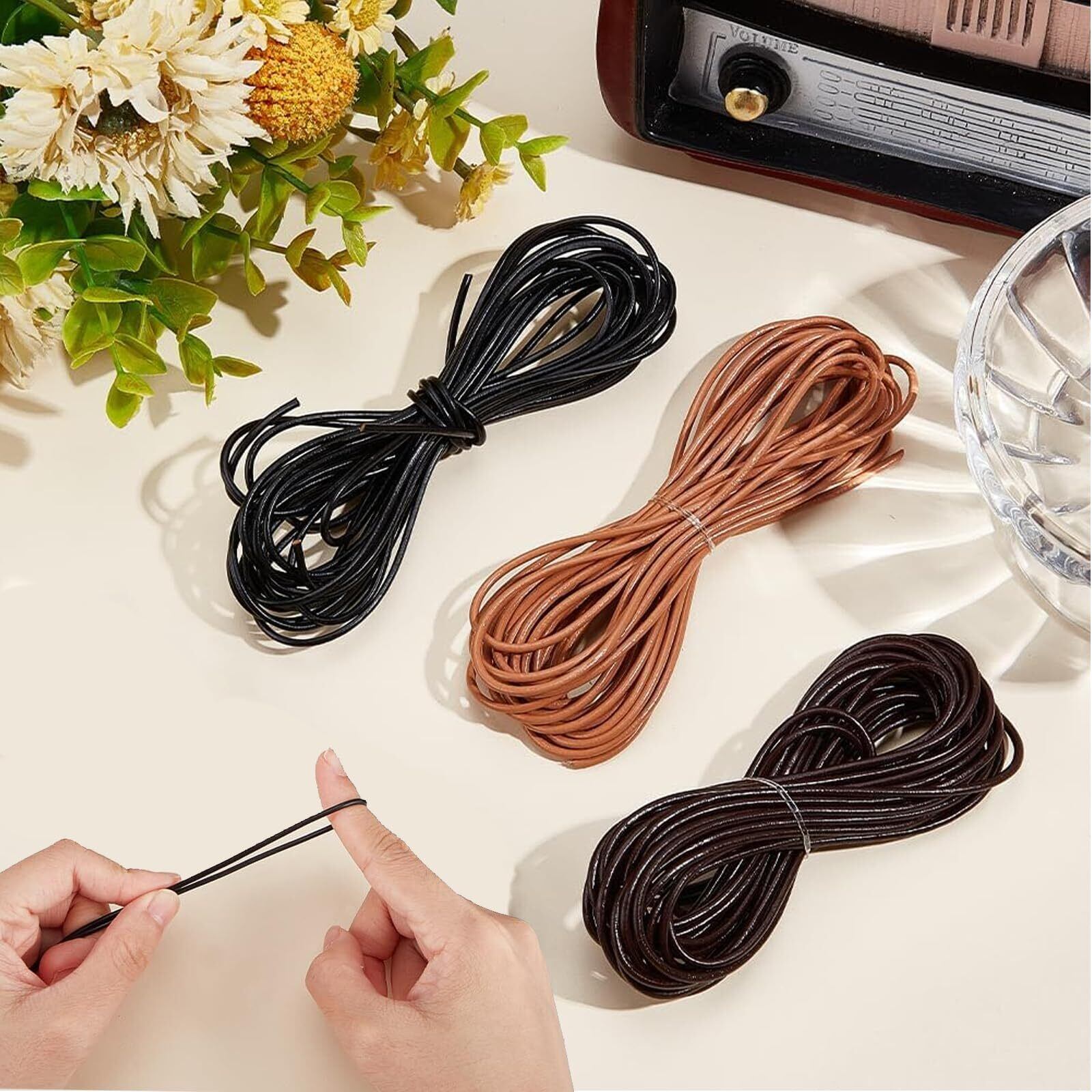 【在庫セール】牛革紐 3束入り 本革紐 リアルレザー レザーコード レ ザークラフト紐 丸紐 革紐 アクセサリー用紐 ネックレス用 アクセサリー作り 手芸 DIY用 (2mm*3m)