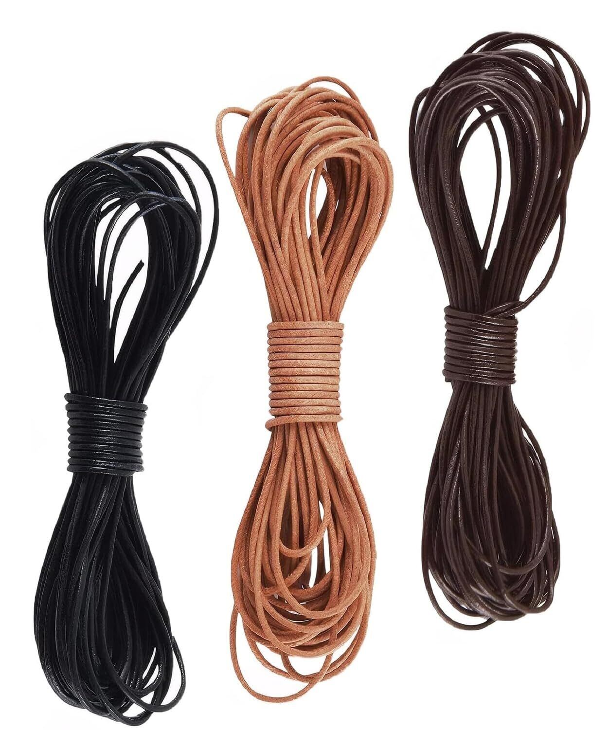牛革紐 3束入り 本革紐 リアルレザー レザーコード レ ザークラフト紐 丸紐 革紐 アクセサリー用紐 ネックレス用 アクセサリー作り 手芸 DIY用 (2mm*3m)