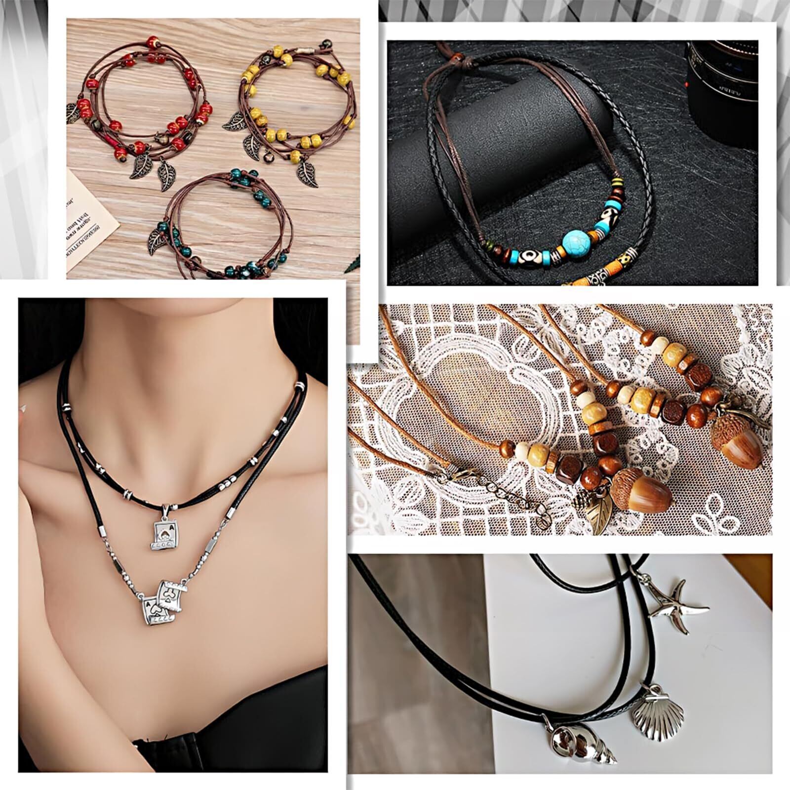 【多様な用途】アクセサリーやネックレスの制作に使用するだけでなく、この牛革紐はブレスレットやアンクレットなどの手工芸品の制作にも使用できます。異なるアクセサリー部品と組み合わせて、ユニークなファッション作品を作り上げることができます。