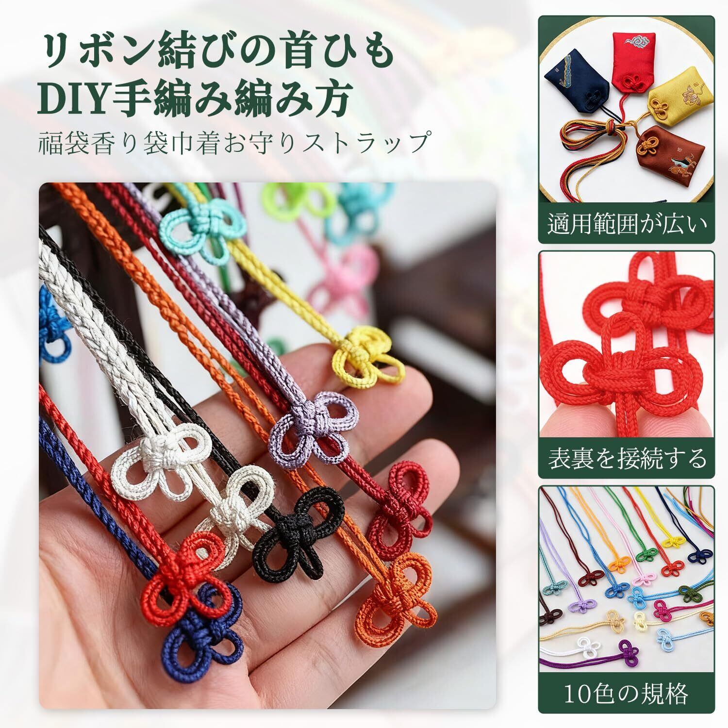 【特価商品】お守り 紐 10本入り 40cm 和風 色彩豊か 組紐 ストラップ 二葉結び 飾り紐 根付紐 しおり お守り袋 手作り 紐飾り 幸運平安の象徴