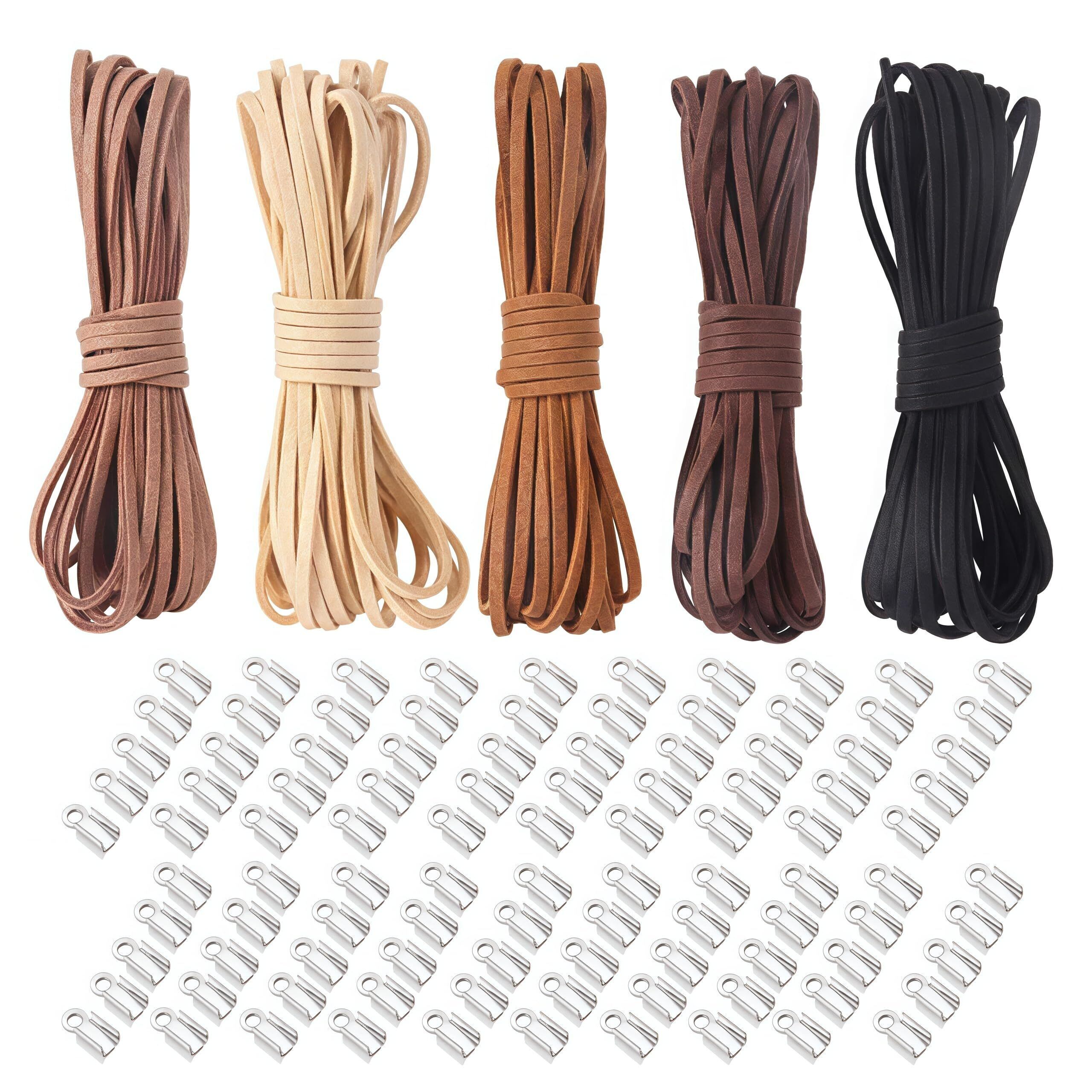 スエード調 革紐 ネックレス 手作りキット 5色セット 2.6mm 韓国皮紐 5m×5色 米白 中 黒 カキ 黄 100個 光板片 DIYアクセサリーパーツ ブレスレット用 手芸材料 レザークラフト 紐
