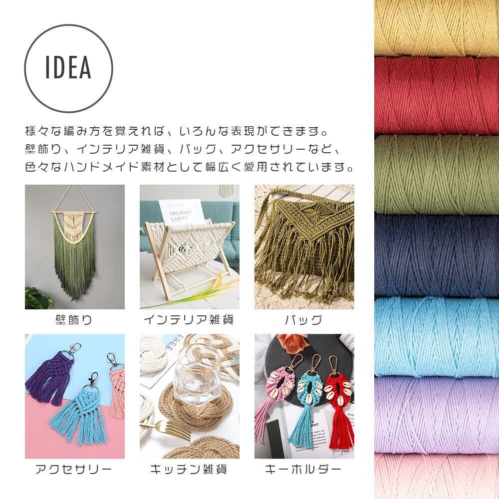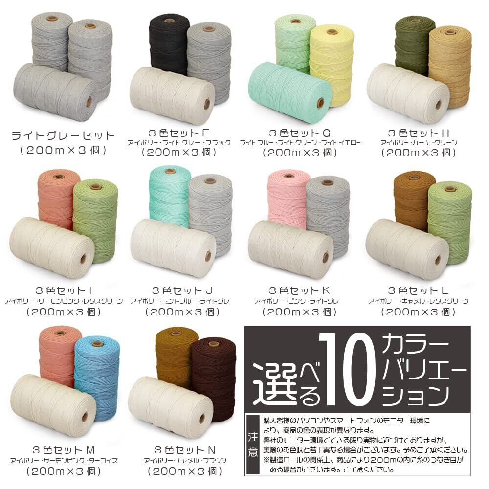 クラフトライフ マクラメ ロープ 紐 糸 200m巻 3巻セット 直径約3mm (アイボリー,サーモンピンク,レタスグリーン)