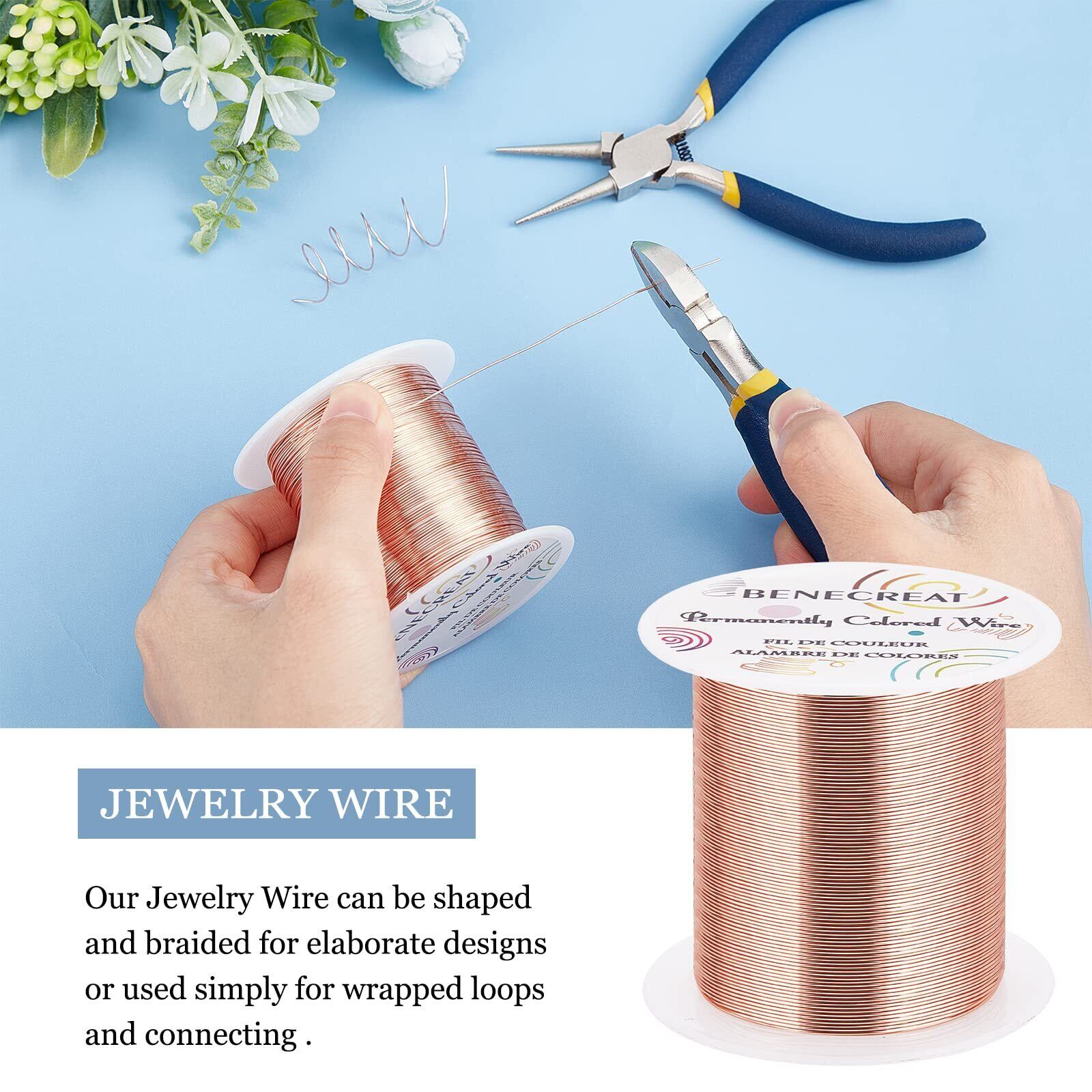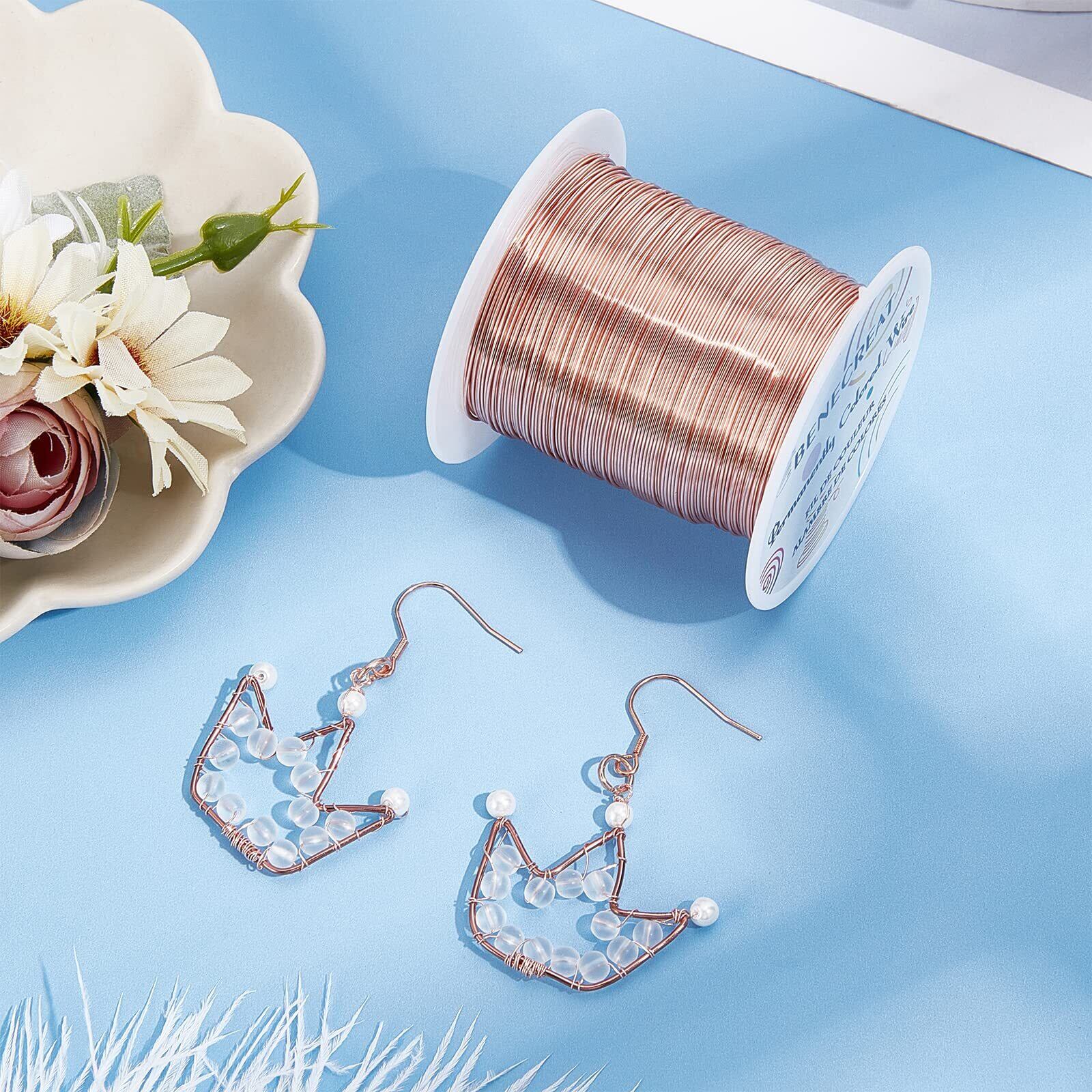 BENECREAT 80m 巻アクセサリーワイヤー 銅製ワイヤー 線径0.5mm 24ゲージ クラフト銅線 アートワイヤー 変色防止 アクセサリーパーツ DIY 手作り 光沢感 アクセサリー用ワイヤー ビーズクラフト ジュエリー作り(赤銅)
