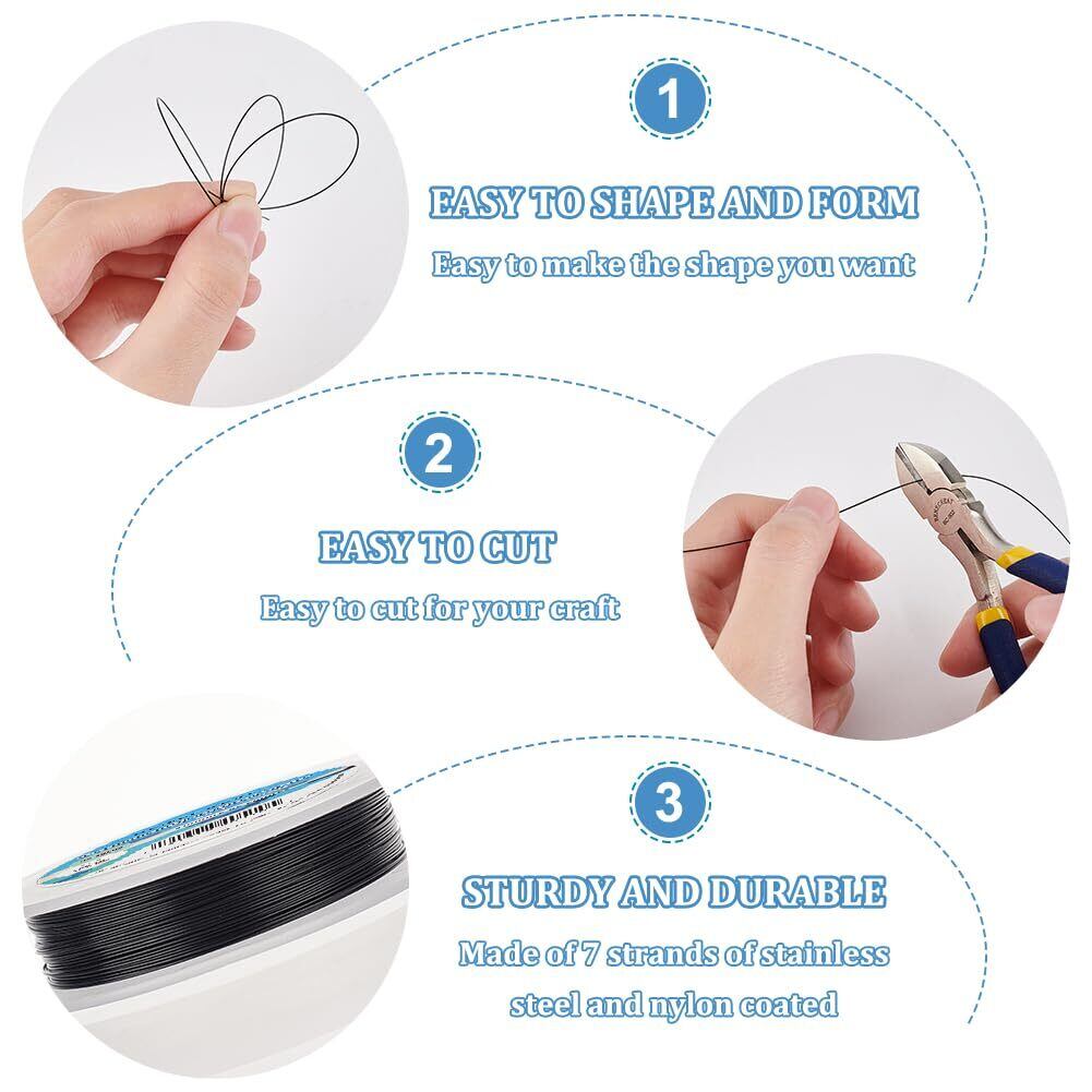 BENECREAT クラフトワイヤー 30m 線径0.5mm 黒色ワイヤー ナイロン塗装 ステンレスワイヤー ビーズ通し アクセサリー作り 手工芸 手作り素材