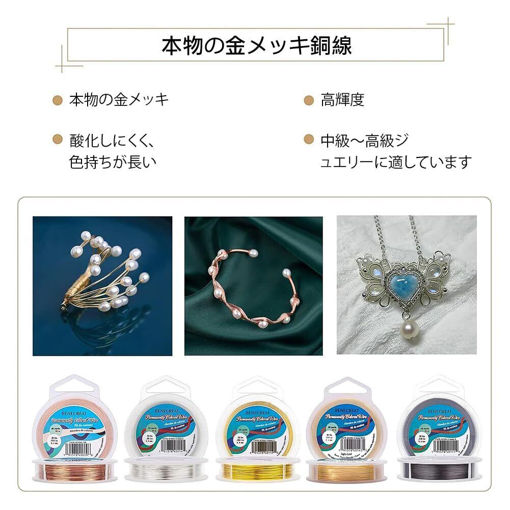 【人気商品】BENECREAT 全長30m線径0.5㎜アクセサリーワイヤー アートワイヤー 光沢感 変色防止カッパーワイヤー クラフト銅線 ジュエリー作り 手芸素材 手作り(ゴールド)