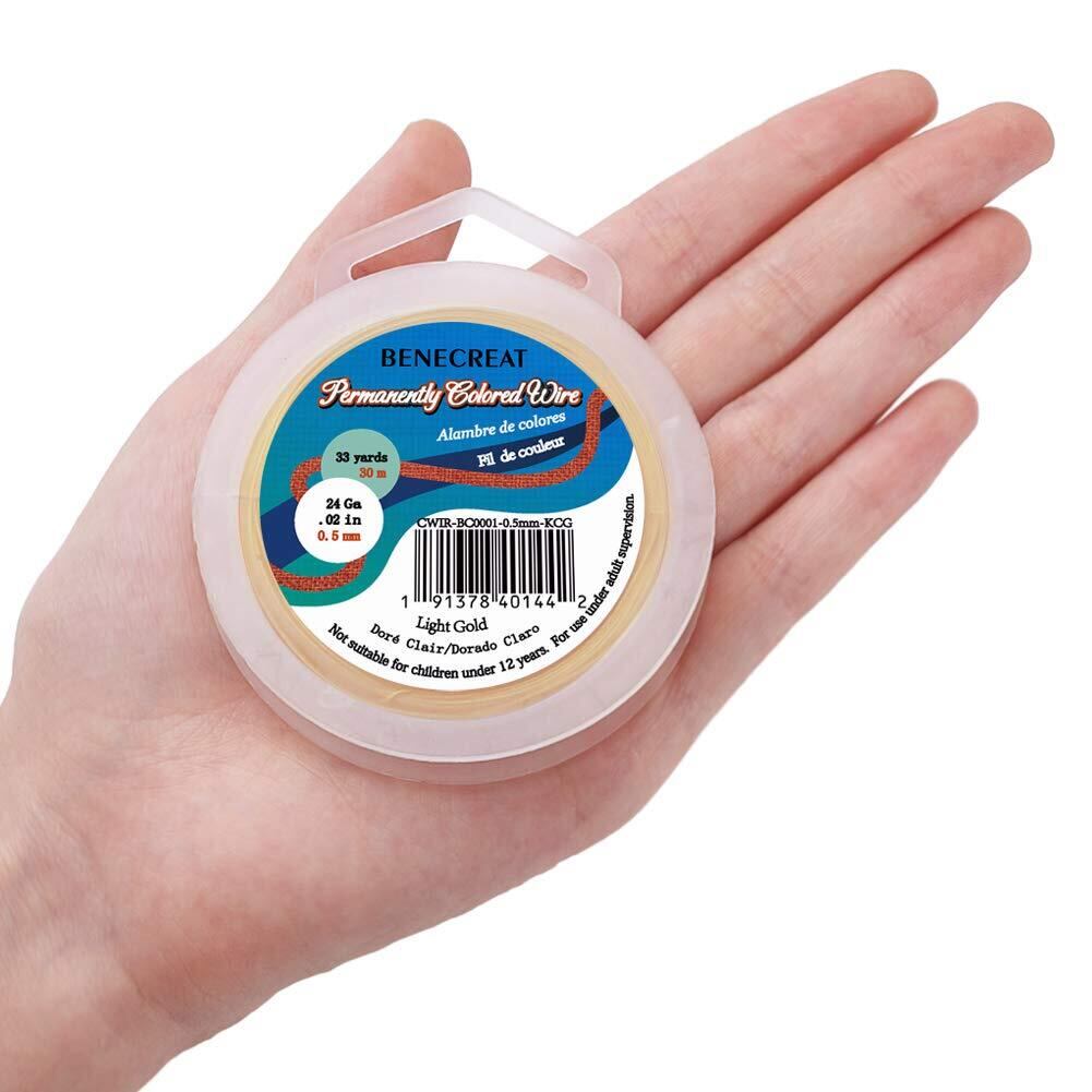 BENECREAT 全長30m線径0.5㎜アクセサリーワイヤー アートワイヤー 光沢感 変色防止カッパーワイヤー クラフト銅線 ジュエリー作り 手芸素材 手作り(ゴールド)