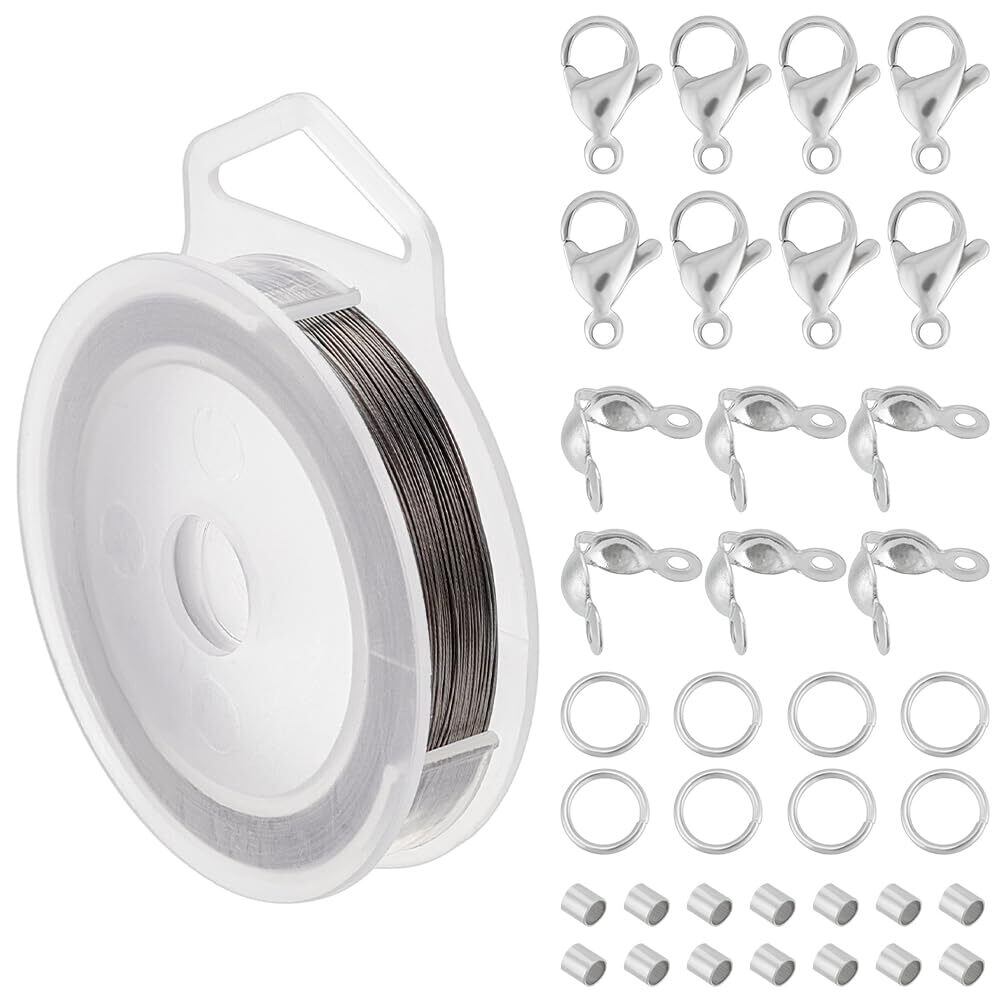 BENECREAT 約100m/ロール ステンレスワイヤー ビーズジュエリー作成キット 厚さ約0.3mm ステンレス鋼線 クラフトワイヤー ビーズワイヤー アクセサリー作りワイヤー