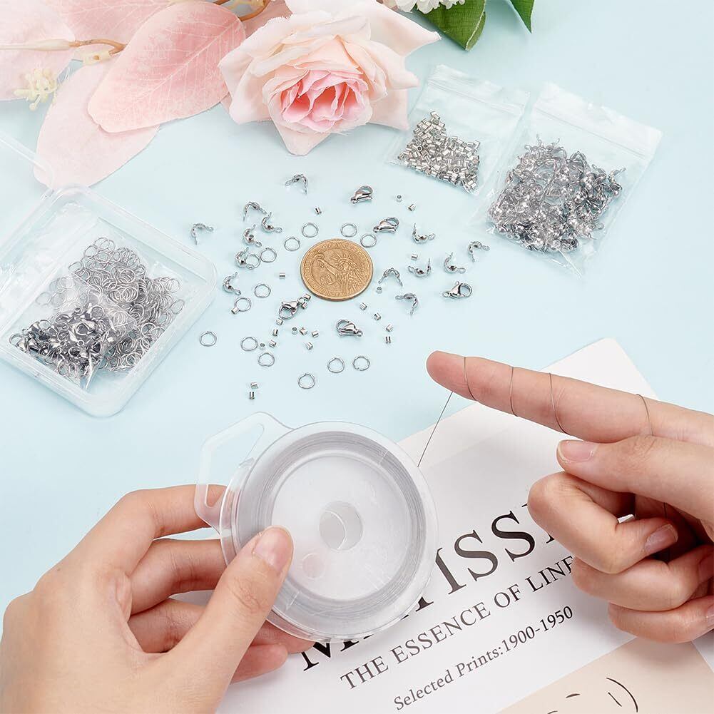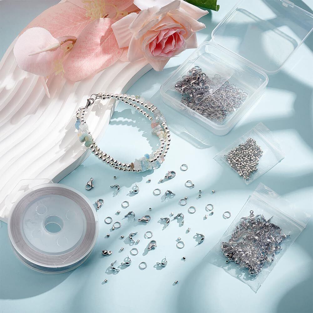ステンレスアクセサリー: (1)200個4.6mm丸カン。(2)クリンプビーズ-1.5x2mm:200個。(3)ロブスタークロークラスプ 30 個-11x7x3.5mm。(4)100 個ビーズチップ: 8x4mm、穴: 1.2mm、小さなジュエリーアクセサリーを見つける時間を節約します。