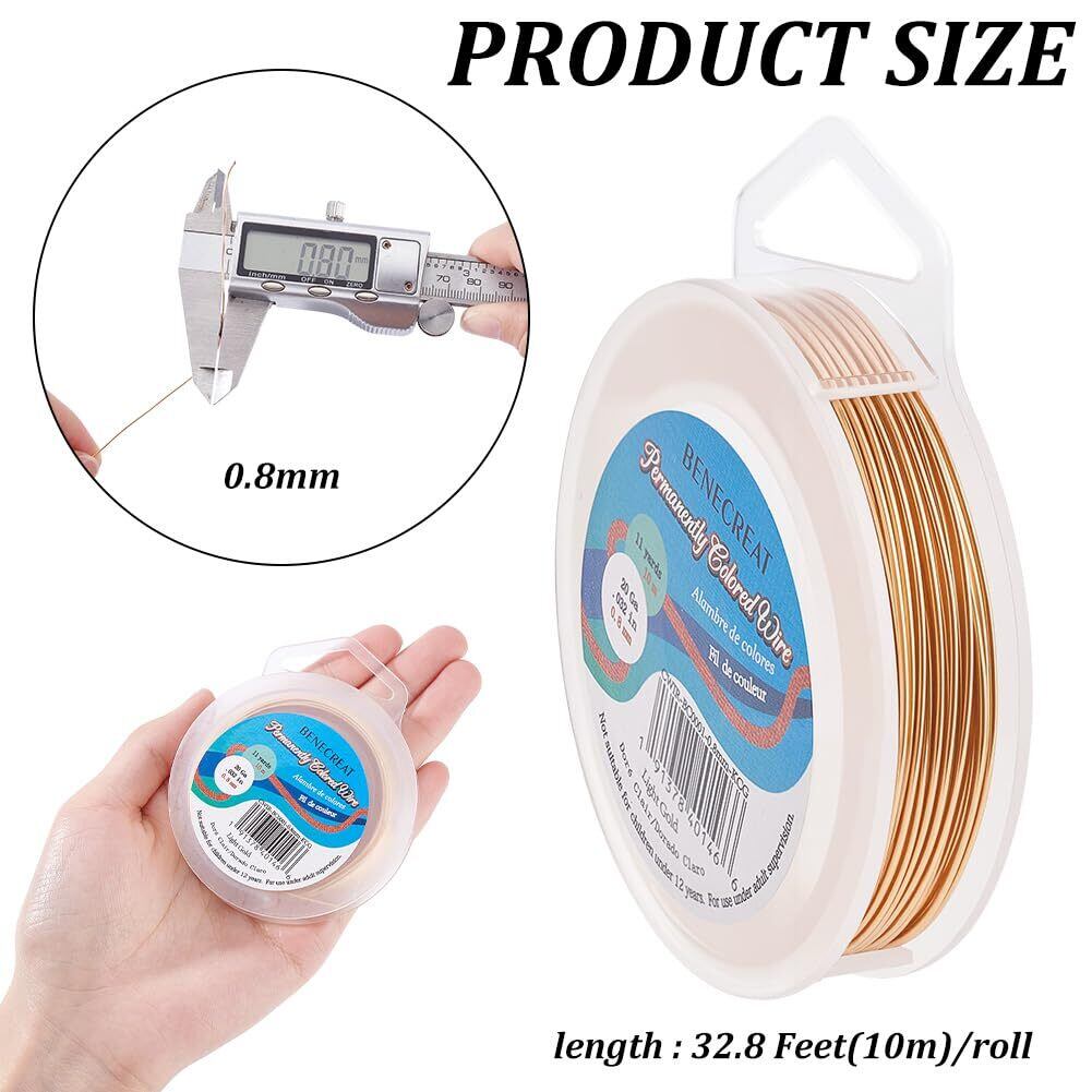 BENECREAT 全長10m線径0.8㎜アクセサリーワイヤー アートワイヤー 光沢感 変色防止カッパーワイヤー クラフト銅線 ジュエリー作り 手芸素材 手作り(ゴールド)