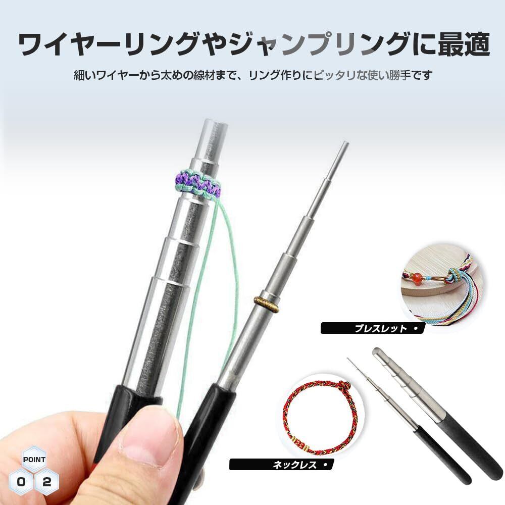 - 【4. 使いやすさと便利性】巻線棒は使いやすく、ジャンプリングやワイヤーリングの製作に最適です。ジュエリーラインも手軽に型作りや曲げが可能で、ペンチでの切断も簡単に行えます。初心者でもプロフェッショナルでも、このツールを使って美しい作品を作ることができます。