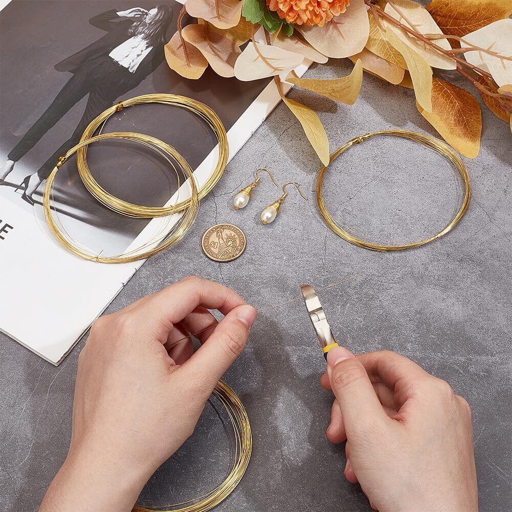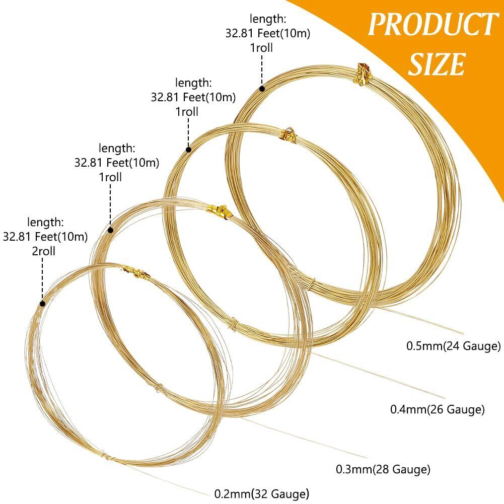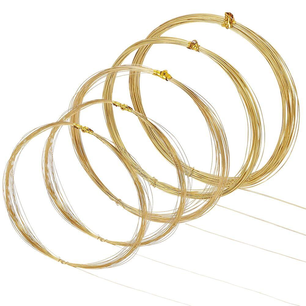 BENECREAT 5巻合計50m アクセサリーワイヤー 線径0.2/0.3/0.4/0.5mm4サイズ 真鍮ワイヤー 真鍮丸線 クラフト銅線 非メッキ アートワイヤー ブラスワイヤー カッパーワイヤー ジュエリー作り(金色)