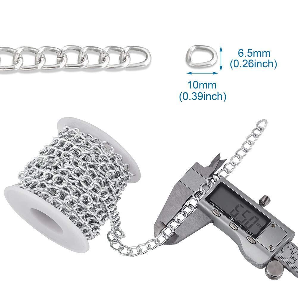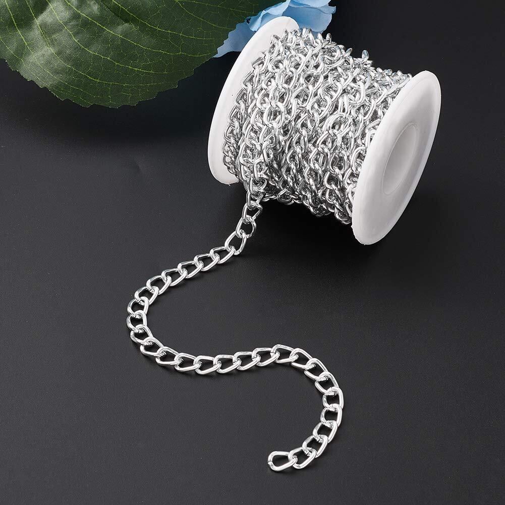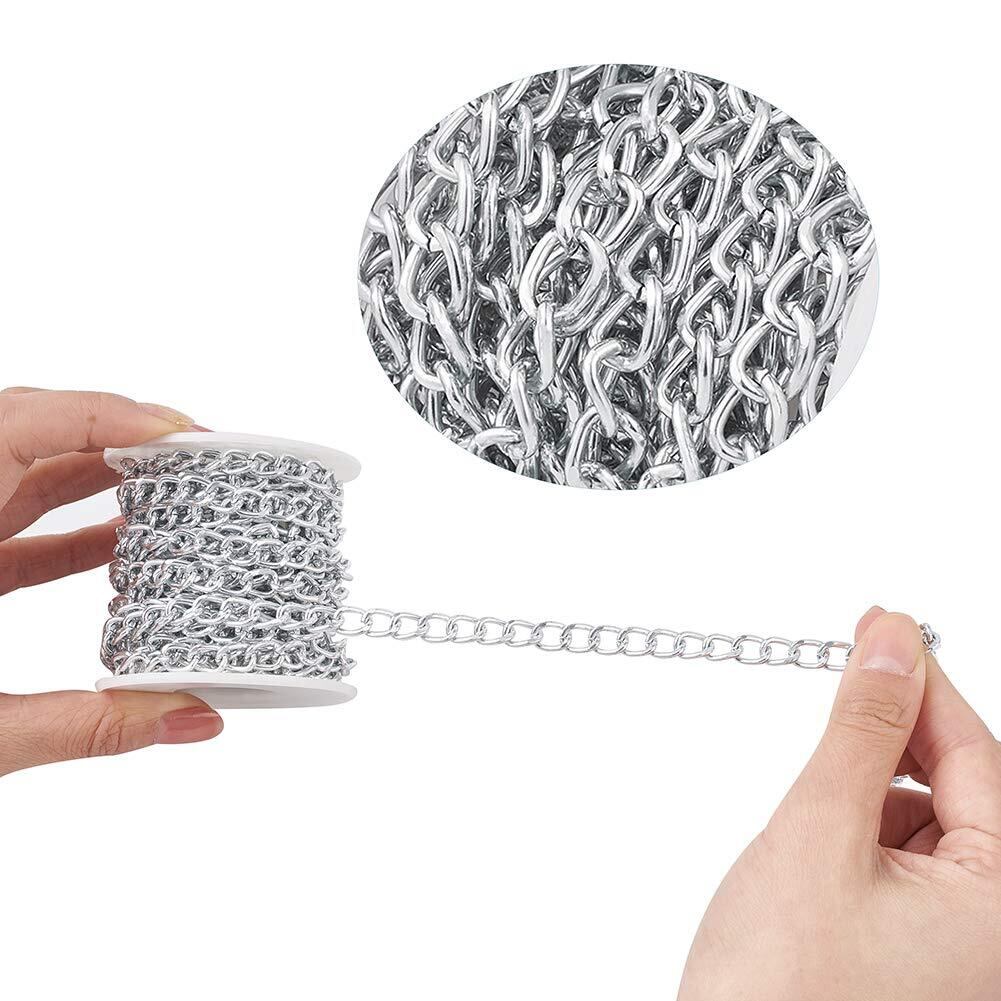 Beadthoven 幅6.5mm シルバー アルミチェーン 喜平チェーン 溶接なし ツイストカーブチェーン ネックレス ブレスレット バッグ用チェーン アクセサリー用 ジュエリー デコレーション ハンドメイド 手作り用品 DIY用 手芸材料 クラフト用品 スプール付き 約5m/巻