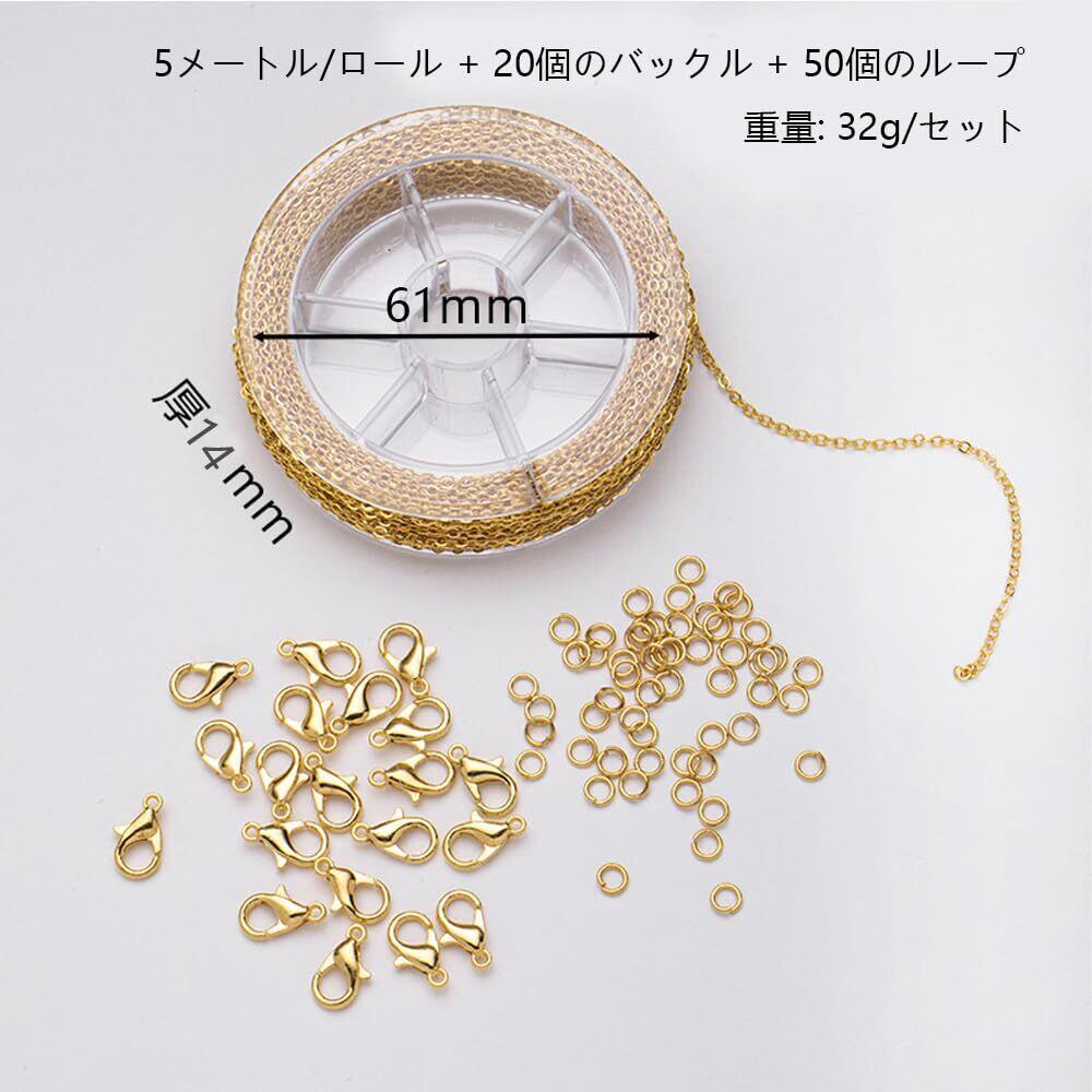 【2022最新】アクセサリー ハンドメイド パーツ チェーン ネックレス チェーンのみ ジュエリー用 クラフト手作り用品 DIY用 ハンドメイド アクセサリーパーツ 長さ:5m 基礎パーツ 女性用宝石メ (金)