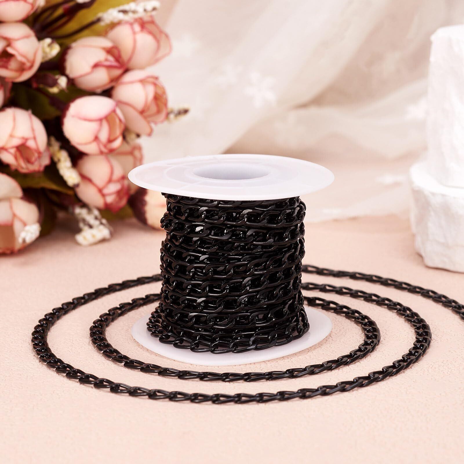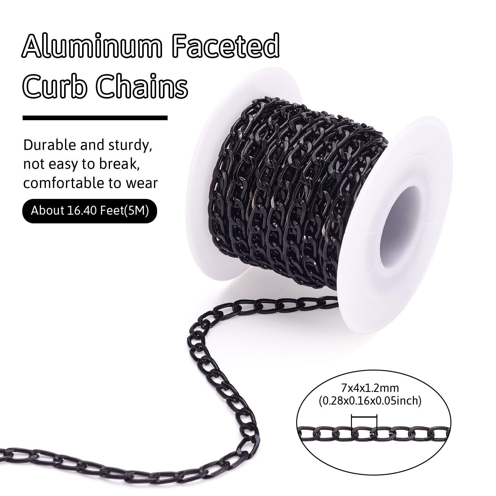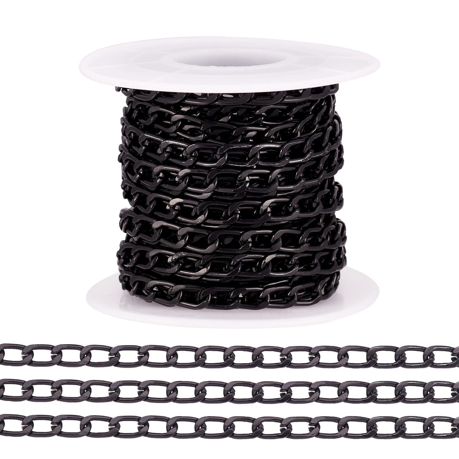 【2022最新】Beadthoven 約5m/巻 幅4mm ブラック アルミチェーン 喜平チェーン 溶接なし リンクチェーン ツイストカーブチェーン アクセサリーパーツ ジュエリー用 DIY ハンドメイド ネックレス ブレスレット パーツ 手芸材料 手作り素材 クラフト用品