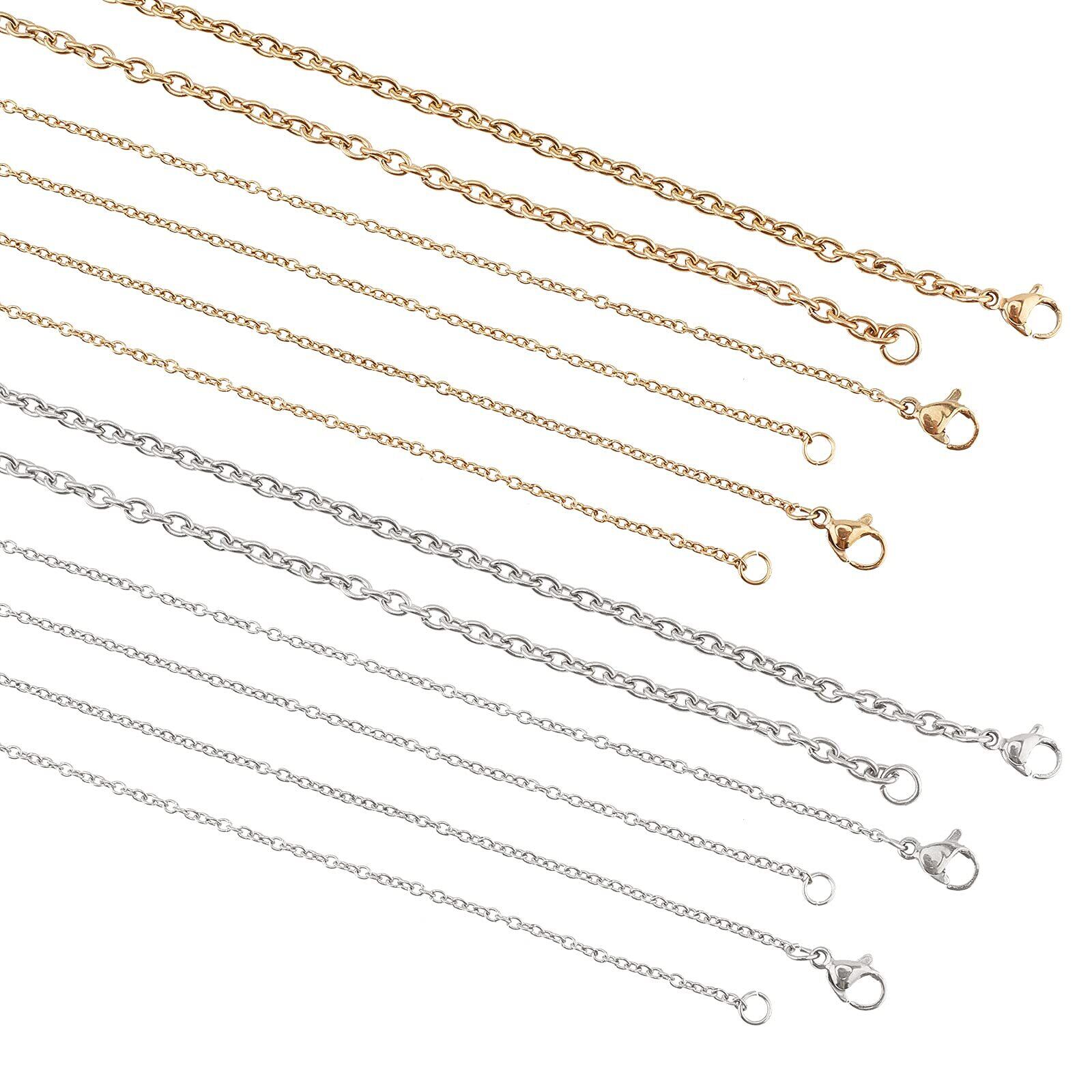 12本 2色 3種 45/50/60cm チェーンネックレス ステンレス チェーン ケーブルチェーン クラスプ付き 留め具付き ネックレスチェーン セット メンズレディジュエリー アクセサリーパーツ アクセサリー用チェーン ストリンギング材料 ハンドメイド
