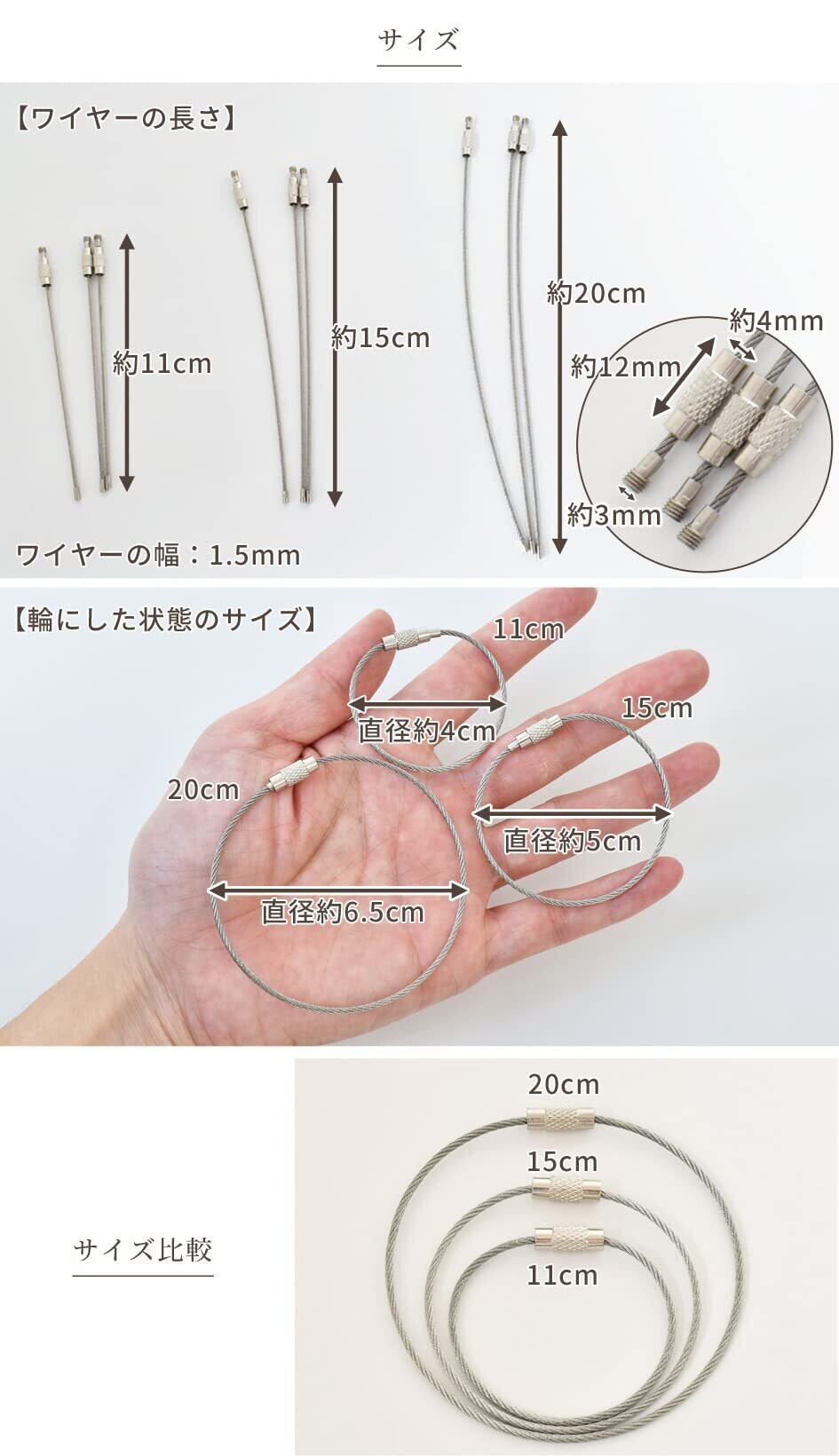 MYmama 卸売り ネジ式 ワイヤー キーホルダー 30本入 ステンレス キーリング 金具 パーツ ストラップ (20cm)