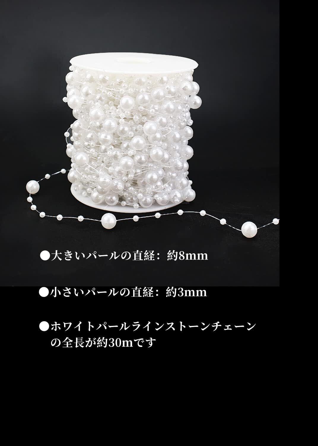 【パッケージ内容】ビーズ チェーンの全長が約30mです。大きいパールの直経:約8mm・小さいパールの直経:約3mm。