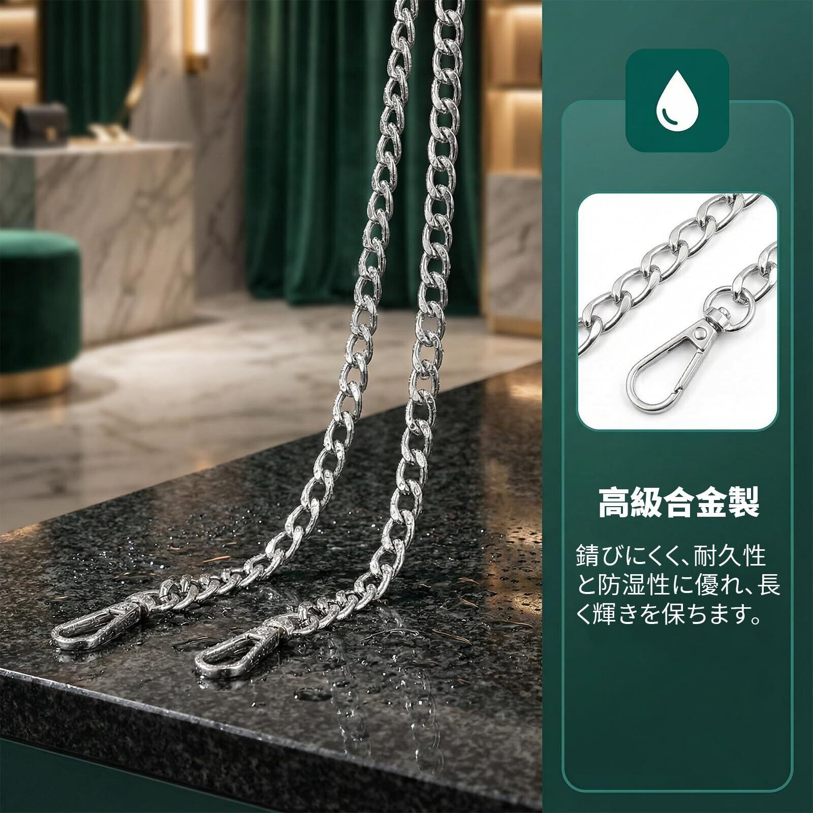 【高品質合金素材】このチェーンは高品質合金製で、錆びにくく耐久性に優れています。長期間使用しても壊れることはありません。優れた耐久性で、バッグにぴったりのアクセサリーです。