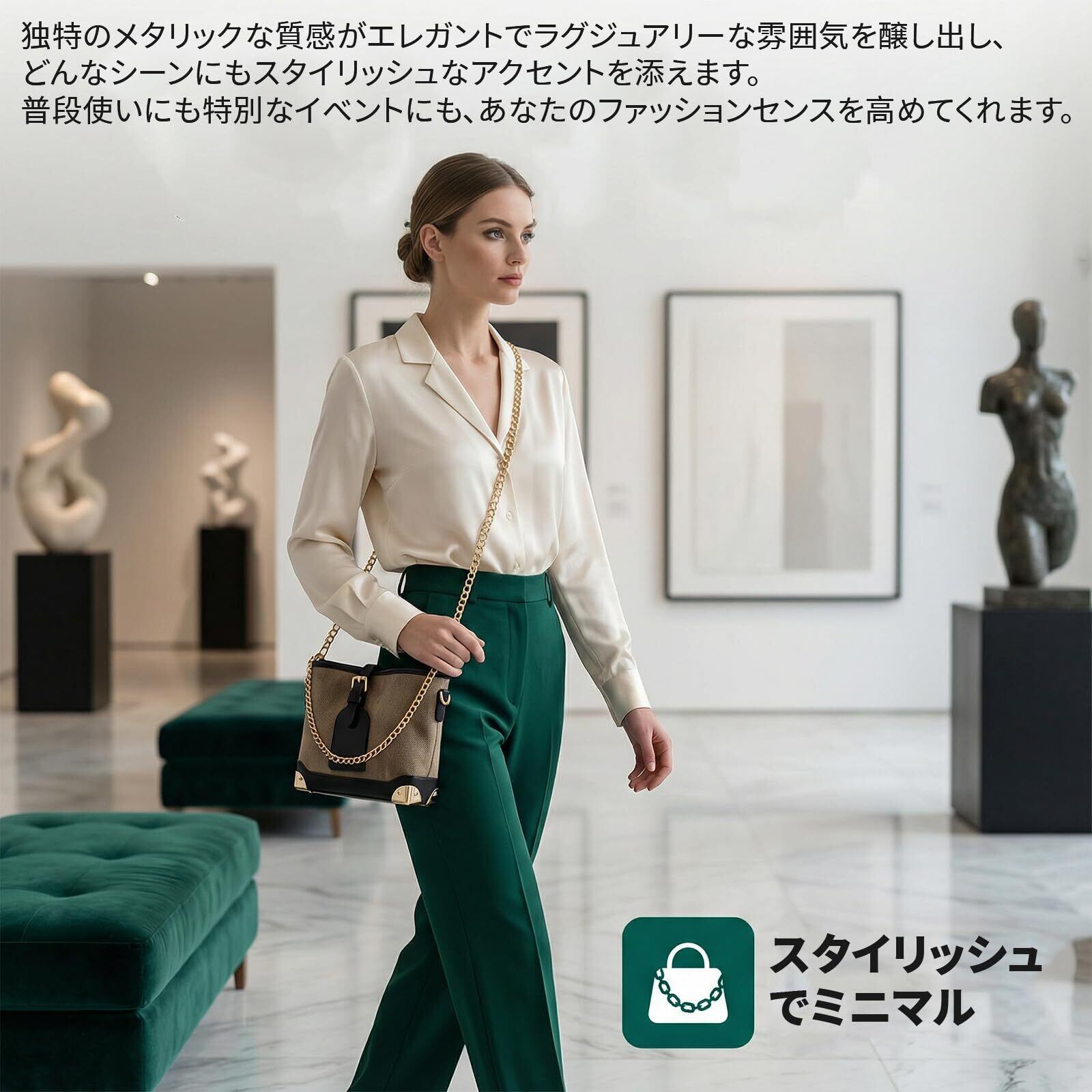 【スタイリッシュでシンプル】独特のメタリックな質感がエレガントで高級感を醸し出し、どんなシーンにもスタイリッシュなアクセントを添えます。普段使いにも特別なイベントにも、あなたの魅力を高めます。