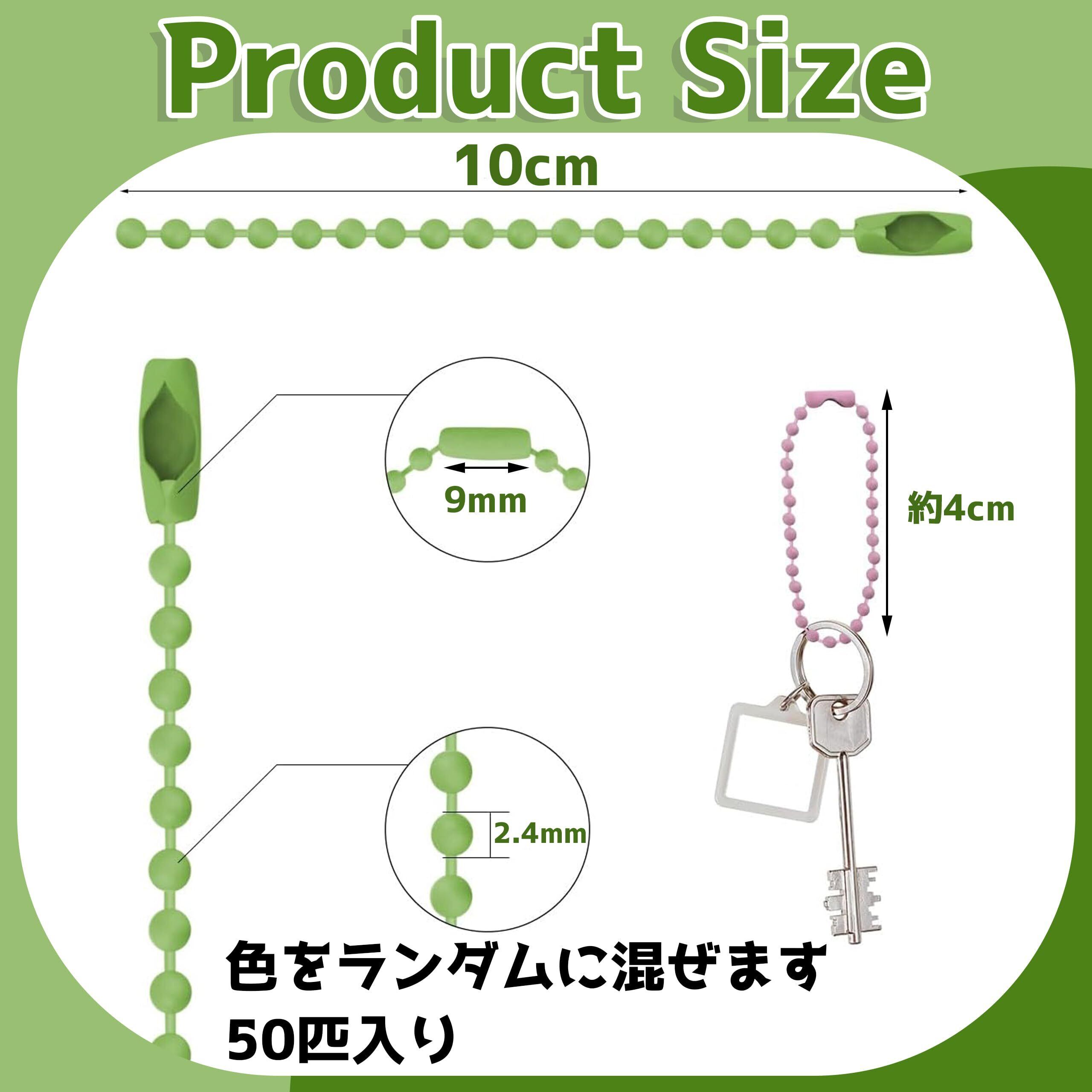 ボールチェーン キーホルダー チェーン コネクター付き マルチカラー 50本セット ボール径2.4mm DIYチェーン アクセサリーパーツ 外れ防止 カラフル 玉鎖(カラーランダム)