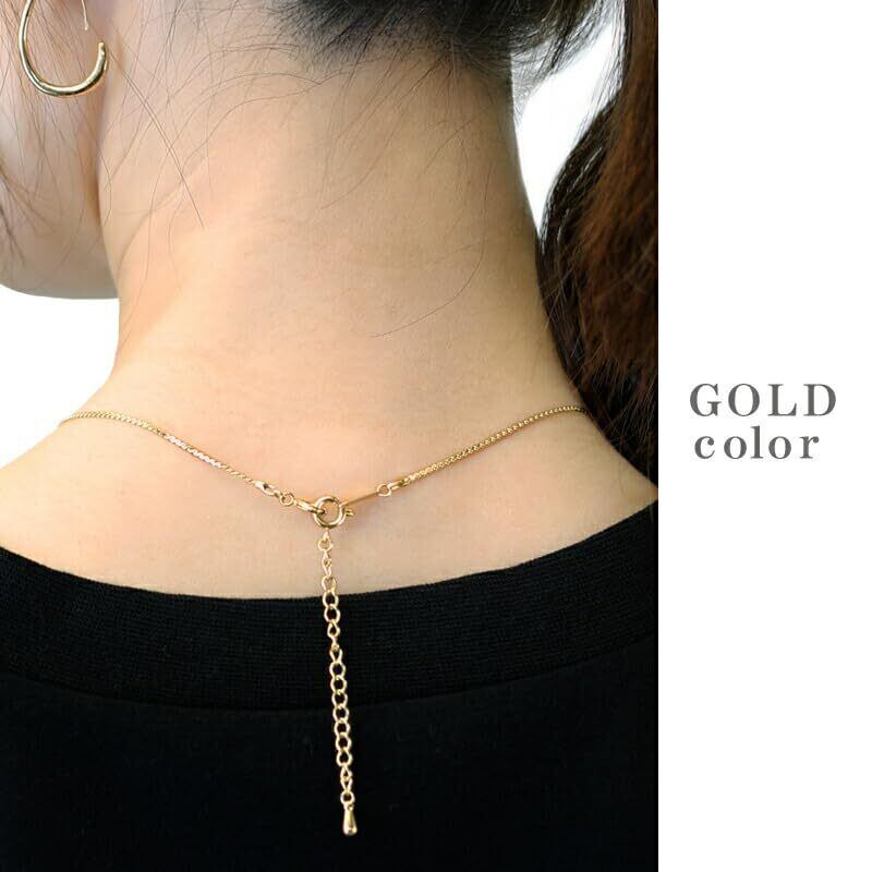 ネックレスの長さ調節に、肌に優しいステンレス製のアジャスターチェーン。