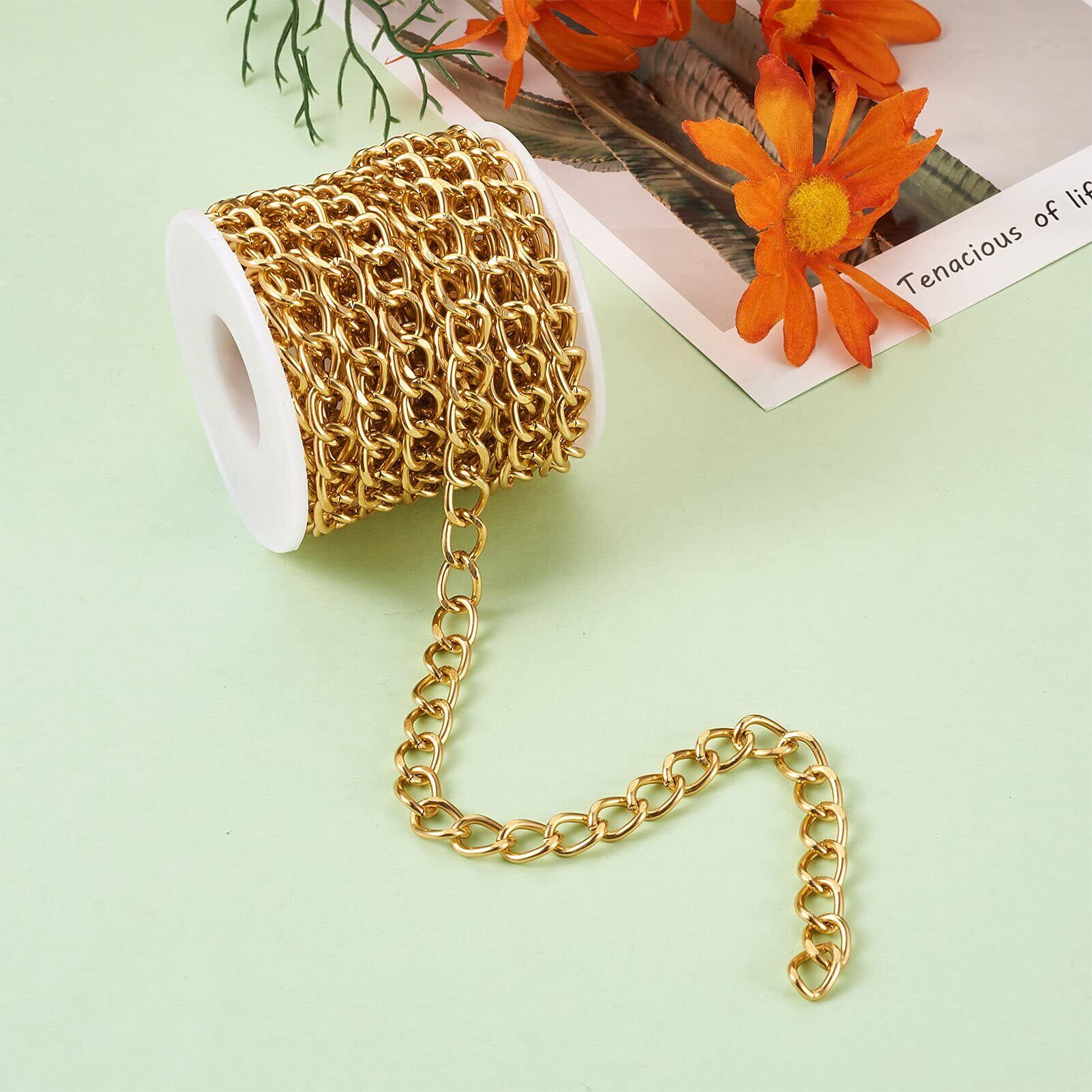 Beadthoven 1巻入り 幅8mm ゴールド アルミチェーン 喜平チェーン 溶接なし カーブチェーン アクセサリー用チェーン DIY ハンドメイド ネックレス ブレスレット ジュエリー製作 手芸素材 手作り材料 クラフト用品 スプール付き 5m/ロール
