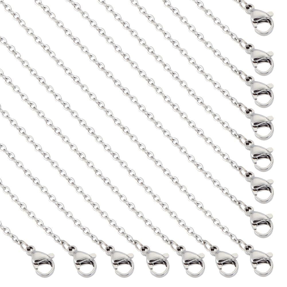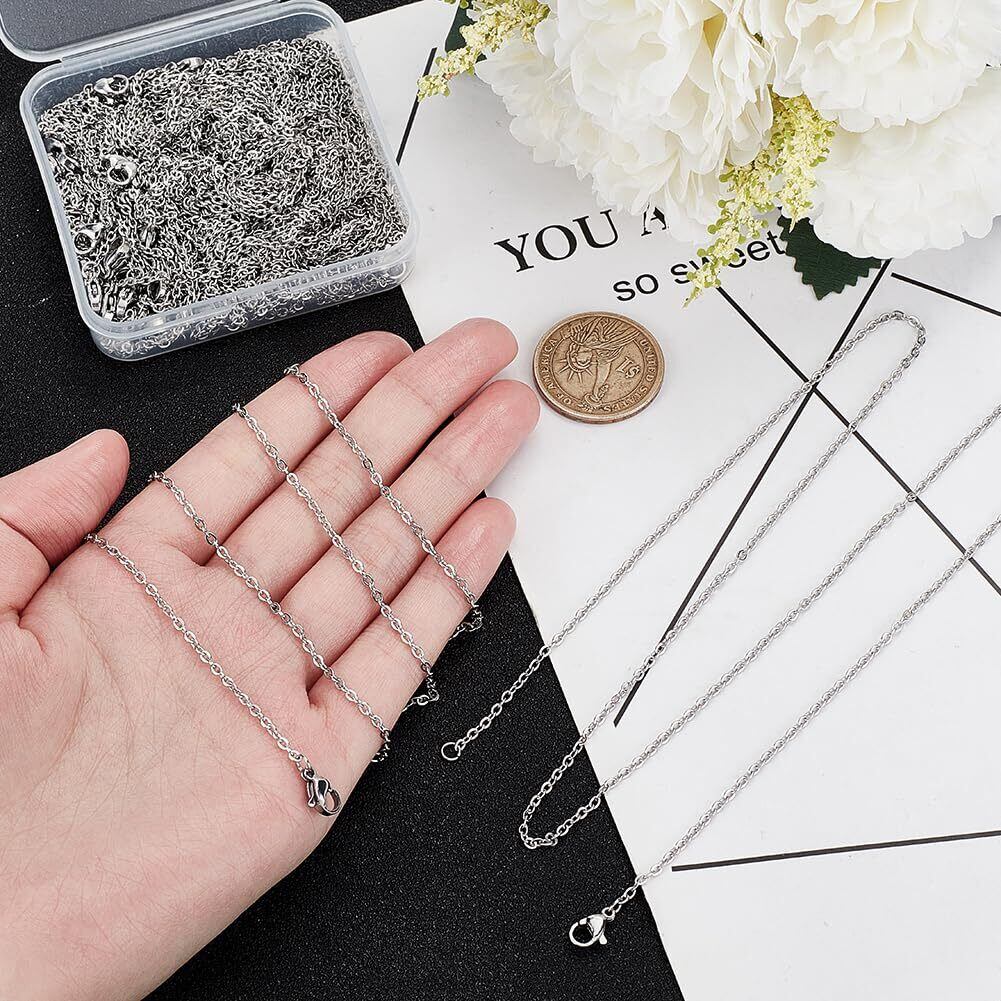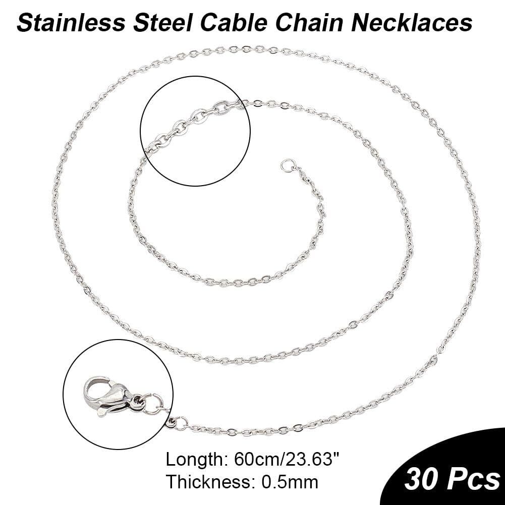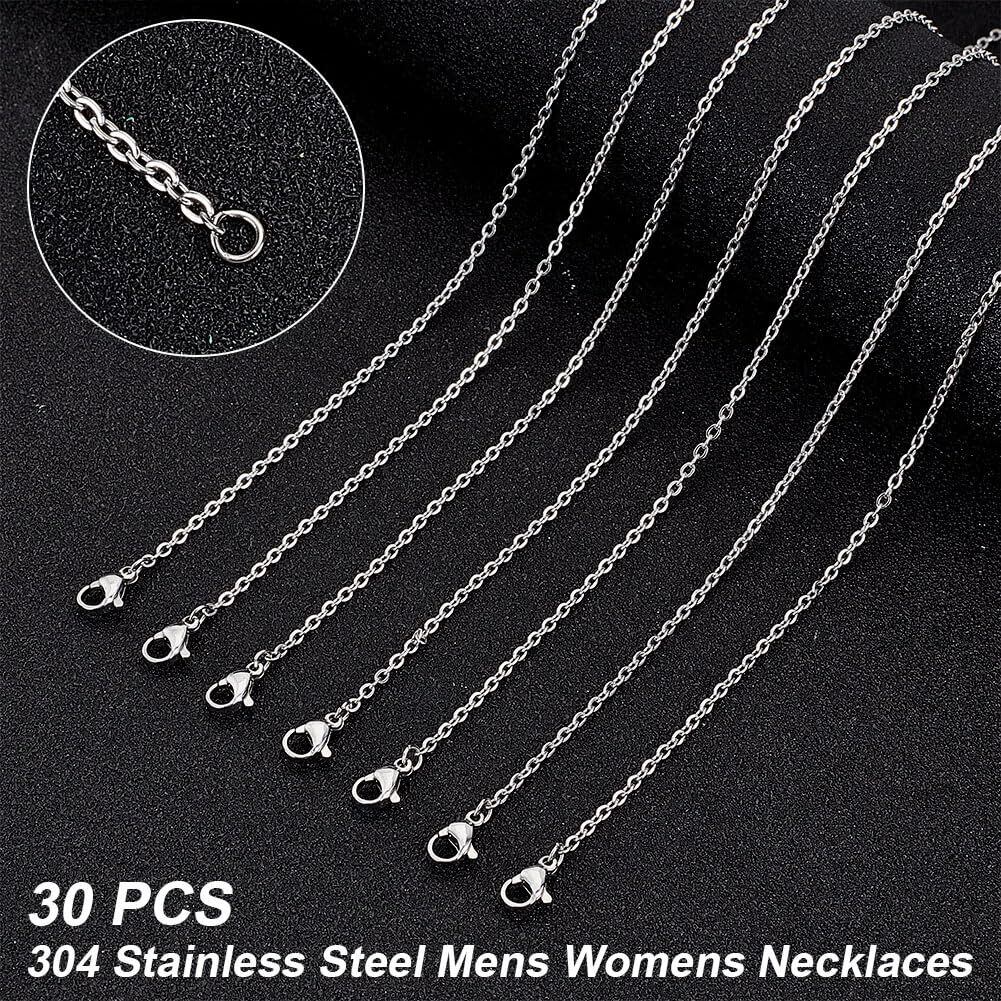 30本 60cm 2.6mm太さ チェーンネックレス ステンレス製チェーン 極細 カニクラスプ付き 留め具付き シルバーチェーン ステンレススチール色 ネックレス チェーン セット メンズレディジュエリー アクセサリーパーツ ストリンギング材料 ハンドメイド