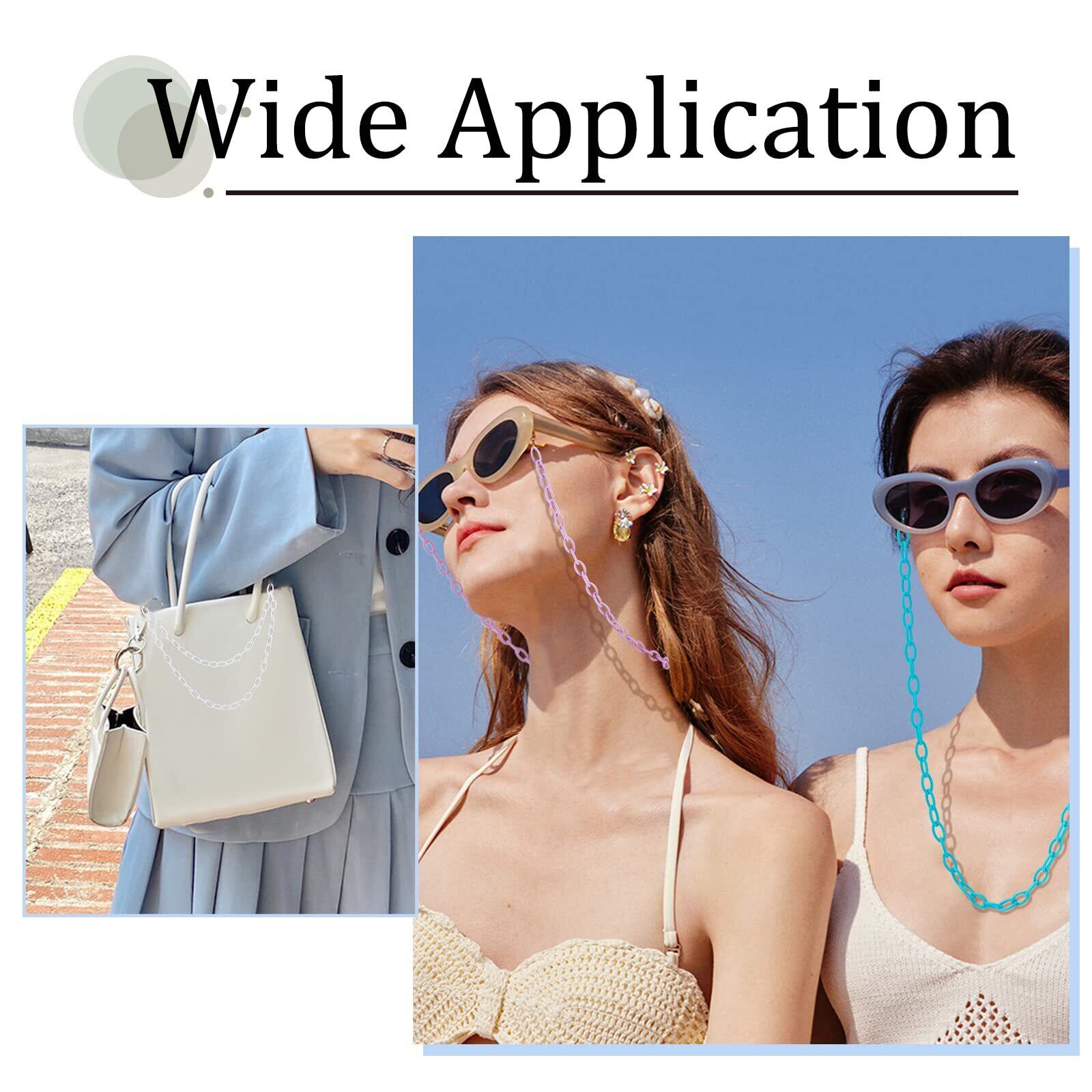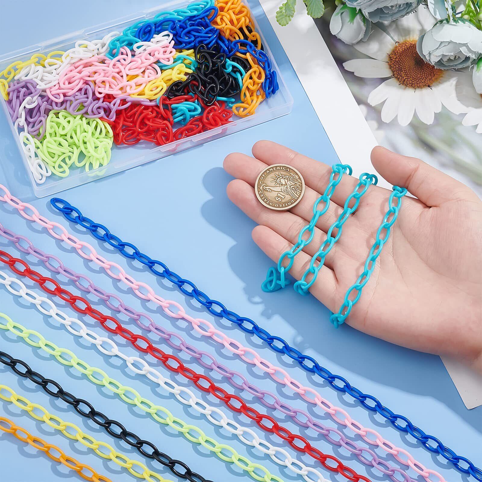 幅広い用途:カラフルのプラスチックチェーンは、ネックレス、ブレスレット、イヤリングなどのアクセサリー作りには最適です。ドレスデコレーション、メガネにも使われています。