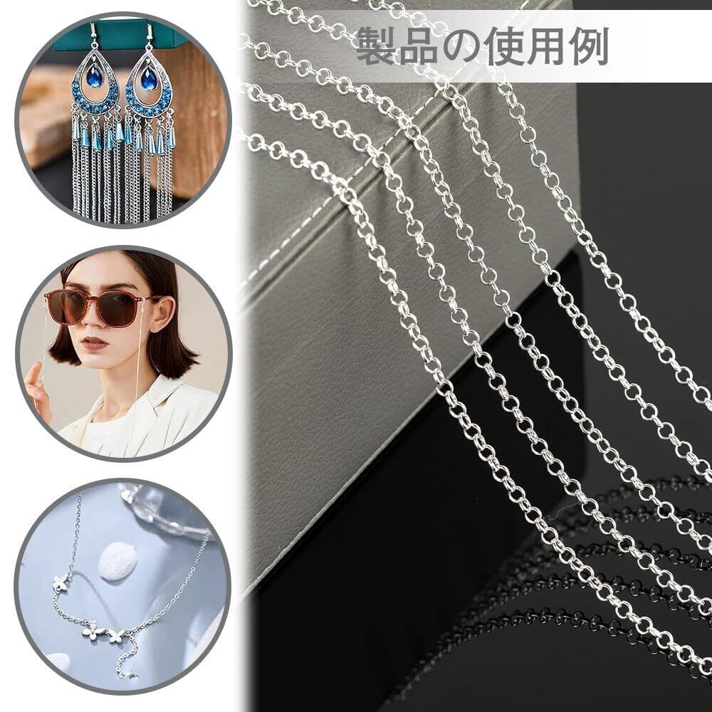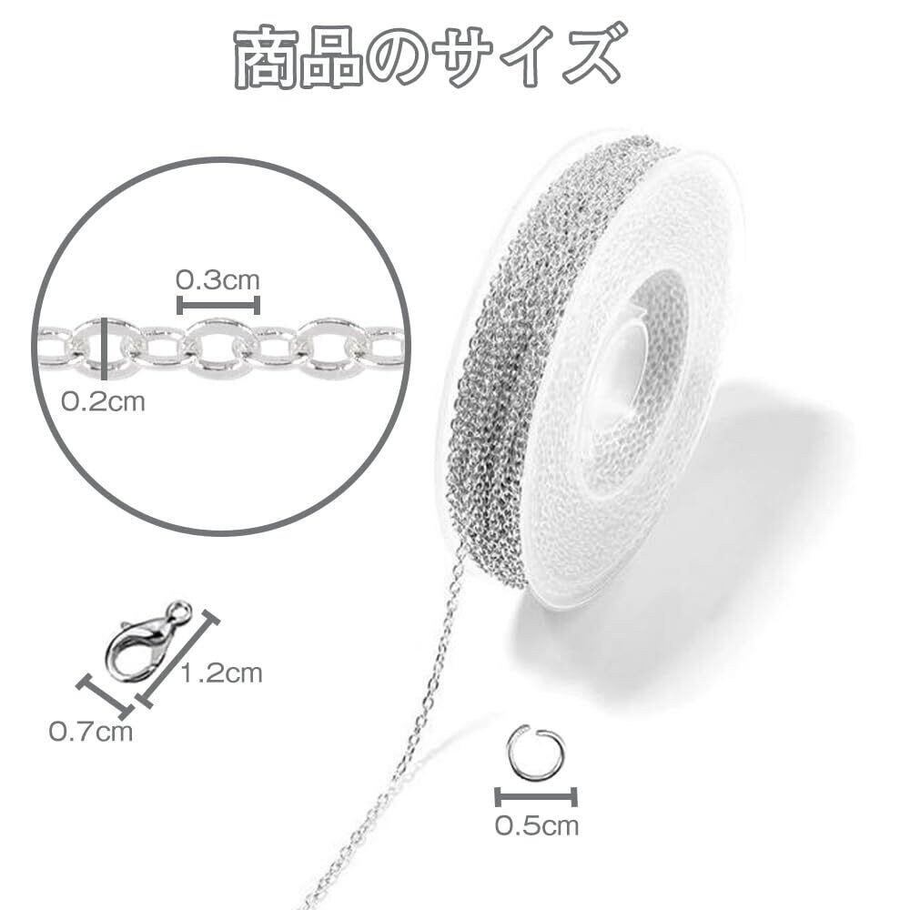 チェーン アクセサリーチェーン アクセサリー用 チェーン キーホルダー 金具 アクセサリーパーツ イヤリング パーツ アクセサリー用 ジュエリー デコレーション ハンドメイド 手作り用品 DIY用 手芸材料 クラフト用品(シルバー)
