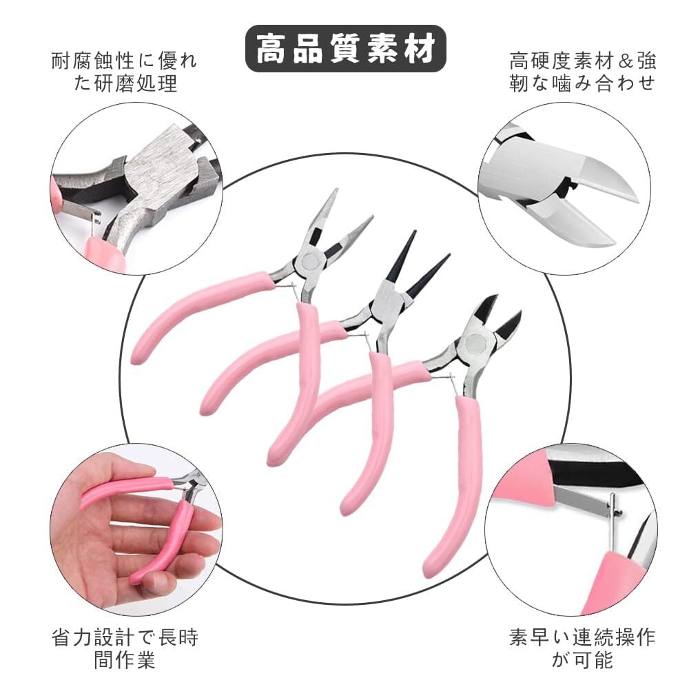 【初心者も安心の基本3点セット】DIYアクセサリーに必要な3種類(ラジオペンチ・丸ペンチ・平ペンチ)を厳選。ハンドメイド初心者でも、ネックレス、ブレスレット、ピアスなどのジュエリー製作が簡単に始められます。