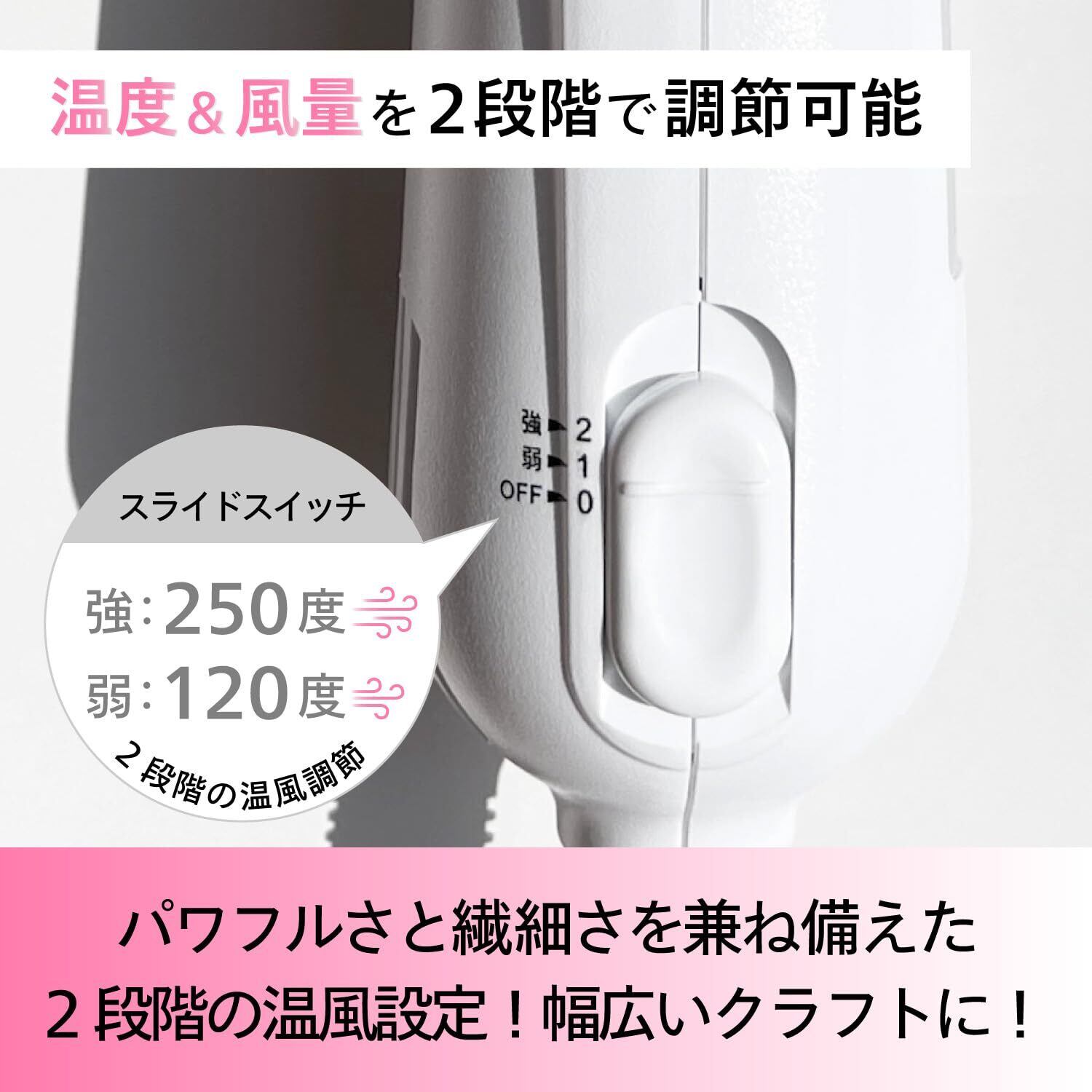 温度変更のできる2段階のスライド式スイッチで様々なクラフトに合わせて使用することができます。