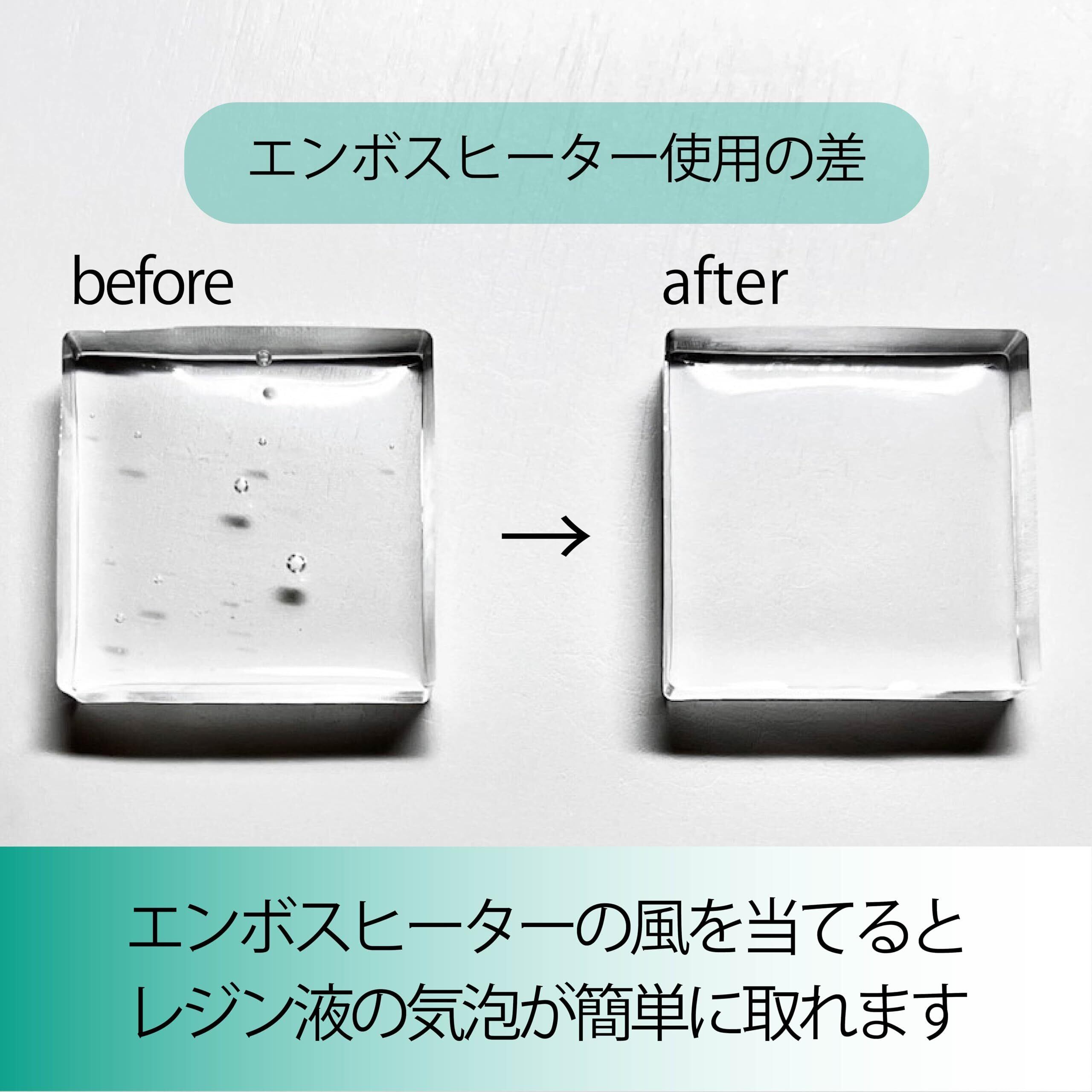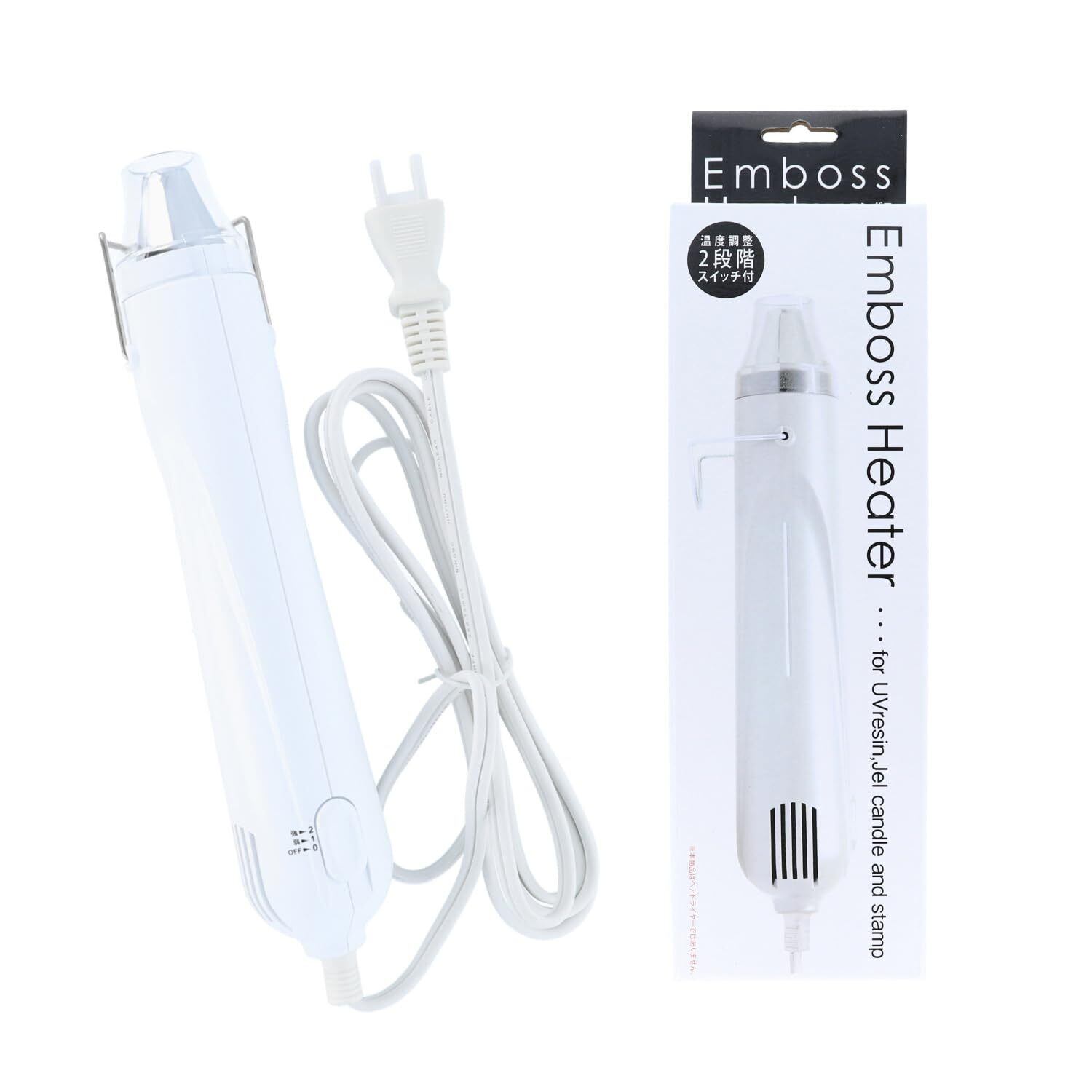 温風を吹き出す、ハンディサイズのエンボスヒーターです。硬化前のレジン液内の小さな気泡を飛ばす時・細かい/立体的なプラバン作品の制作など様々なクラフトにご使用いただけます。