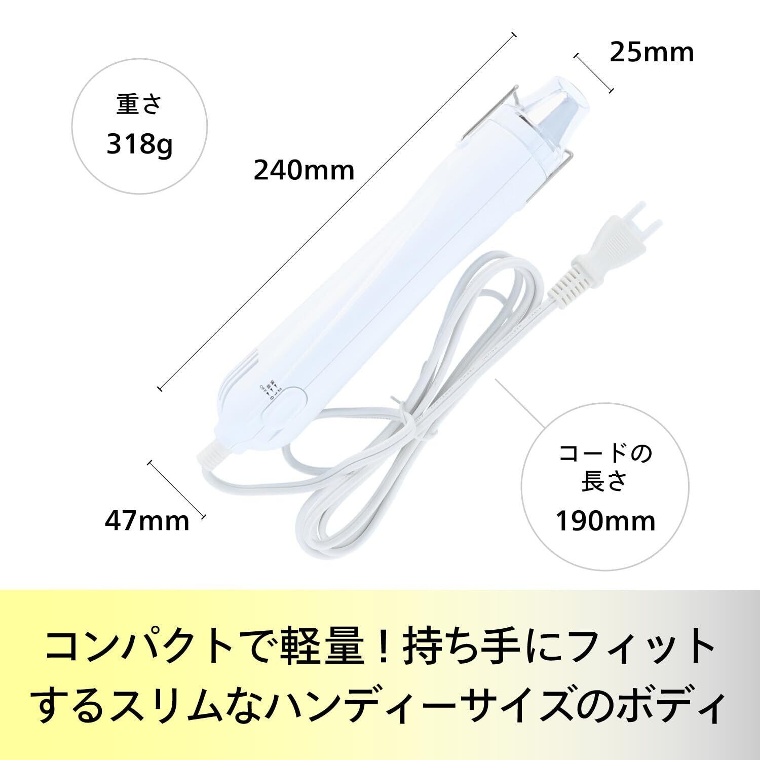 温度調節用のスライド式スイッチ2段階付き:強:250℃ 弱:120℃(スイッチを切り替えると温度と共に風量も合わせて強弱します)
