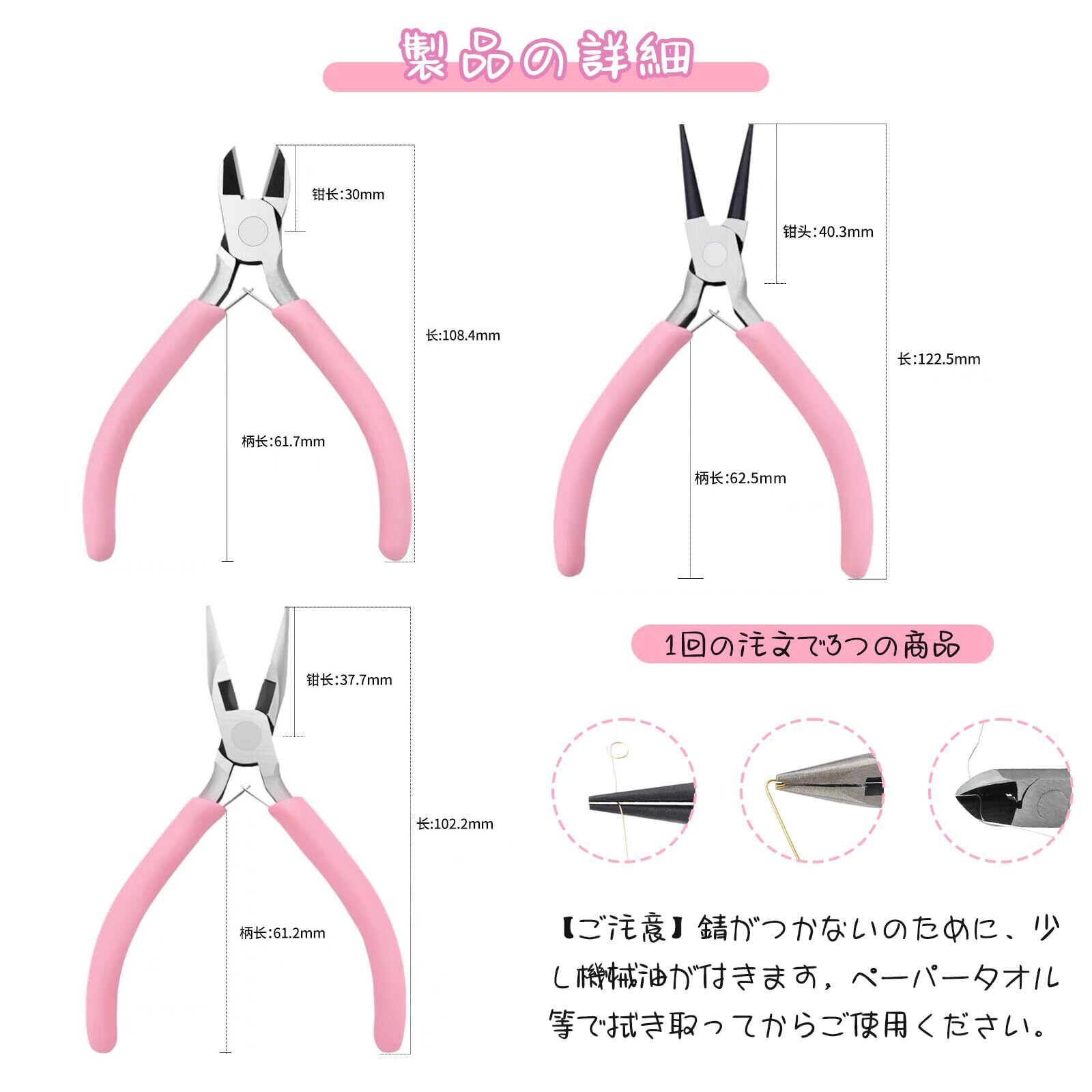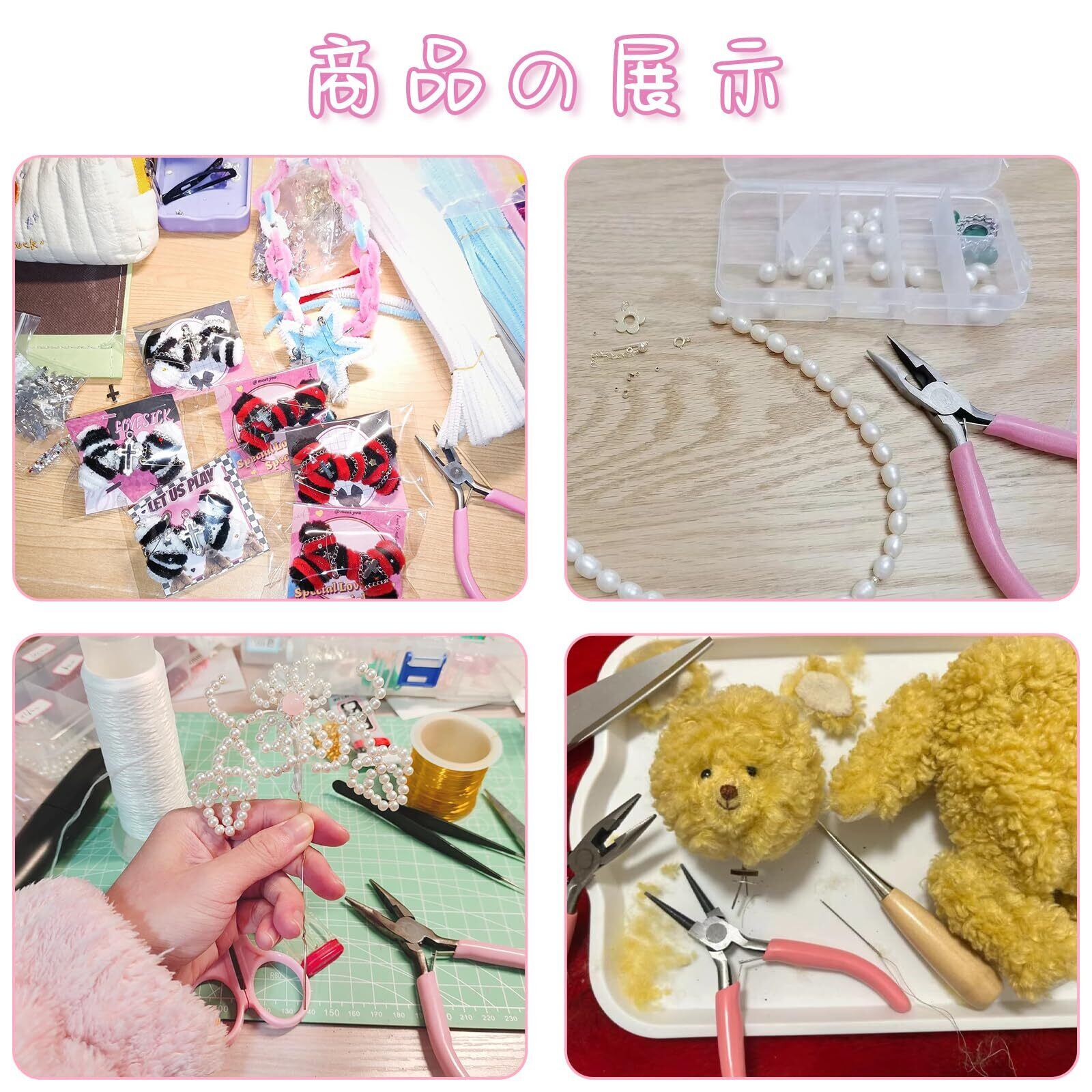 手芸ペンチ アクセサリー工具ペンチセット ペンチ 平やっとこ ニッパー 丸ペンチ アクセサリー製作 軽量 小型 多機能 防水 耐久性 DIY 手作り道具 精密手作り アクセサリー作り 手芸用工具 ピンク