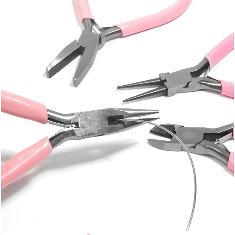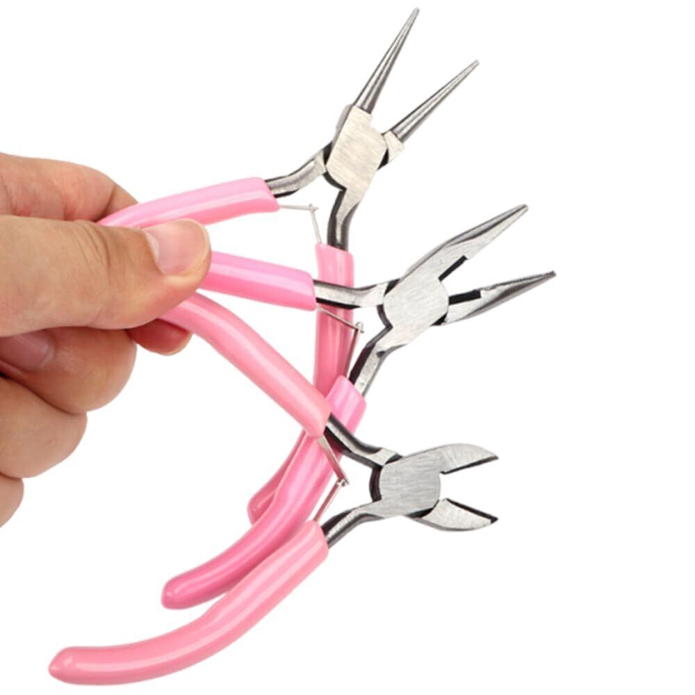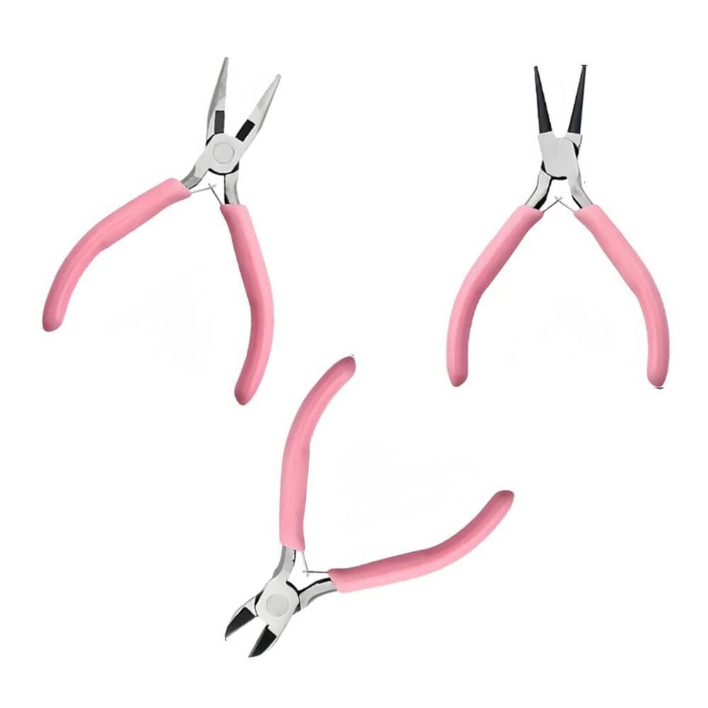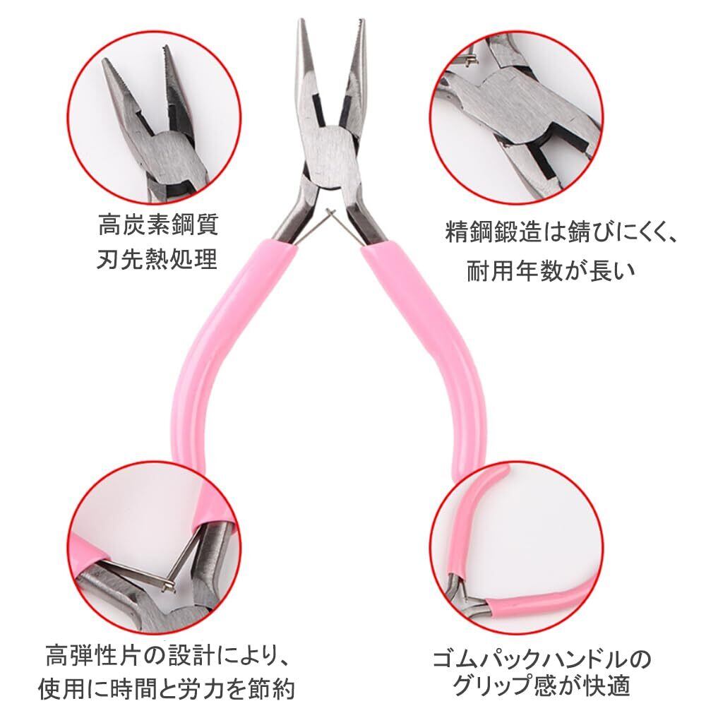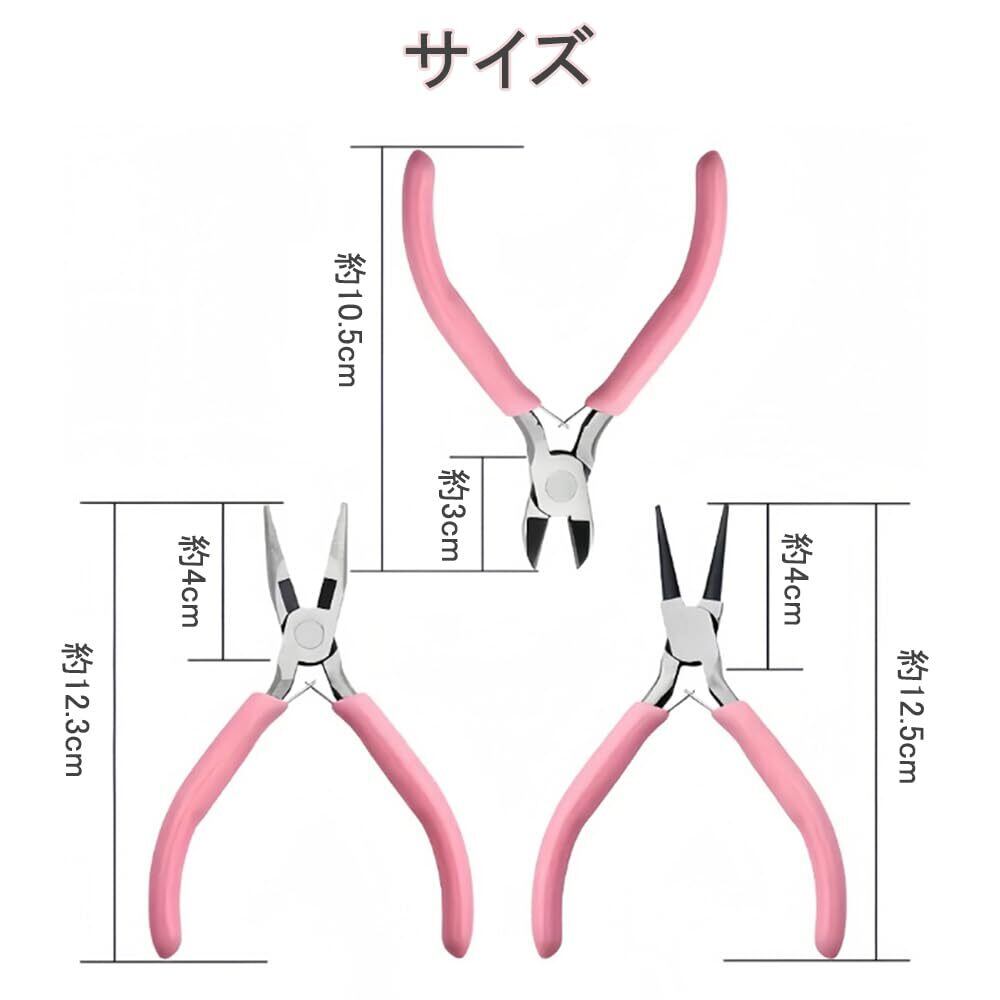 YFFSFDC 手芸ペンチ 小型 軽量 コンパクト設計 多機能 アクセサリー製作 工具 耐久性 精密手作り 手作り道具 DIY 手芸ペンチ 細工用 ジュエリー工具 3点セット ピンク