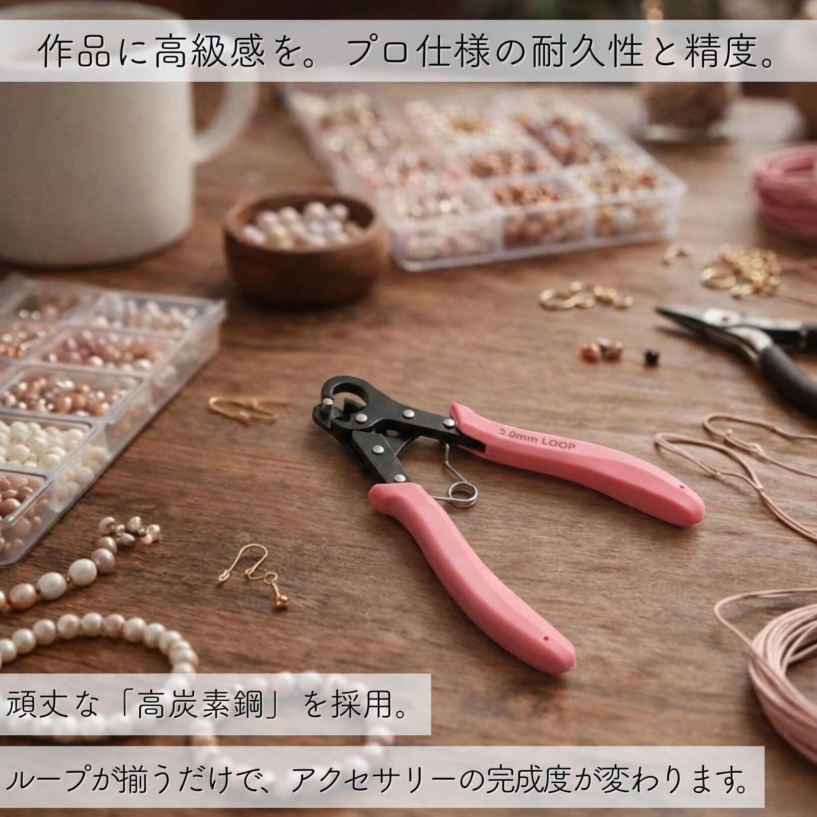 【手が疲れにくいスプリング設計】 適度な反発力があるスプリングアクションを採用。長時間のアクセサリー制作でも手への負担を軽減し、リズム良く作業を進めることができます。