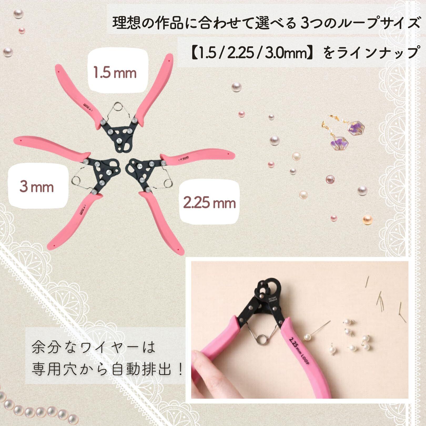 【選べる3つのループサイズ】 1.5mm、2.25mm、3.0mmの3種類をラインナップ。作りたいアクセサリーのボリュームや、使用するビーズのサイズに合わせて最適な円の大きさを選べます。
