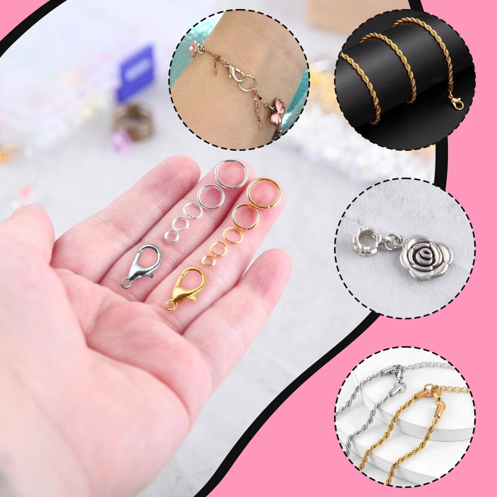 幅広い用途:複数のサイズのジャンプリングが、さまざまなジュエリー作りのニーズを満たします。DIYチョーカー、ブレスレット作り、ネックレスの修理、ビーズクラフト作り、ワイヤーラッピングなどに適しています。ジュエリー作りが大好きな大人、子供、女の子のためのスターターキット