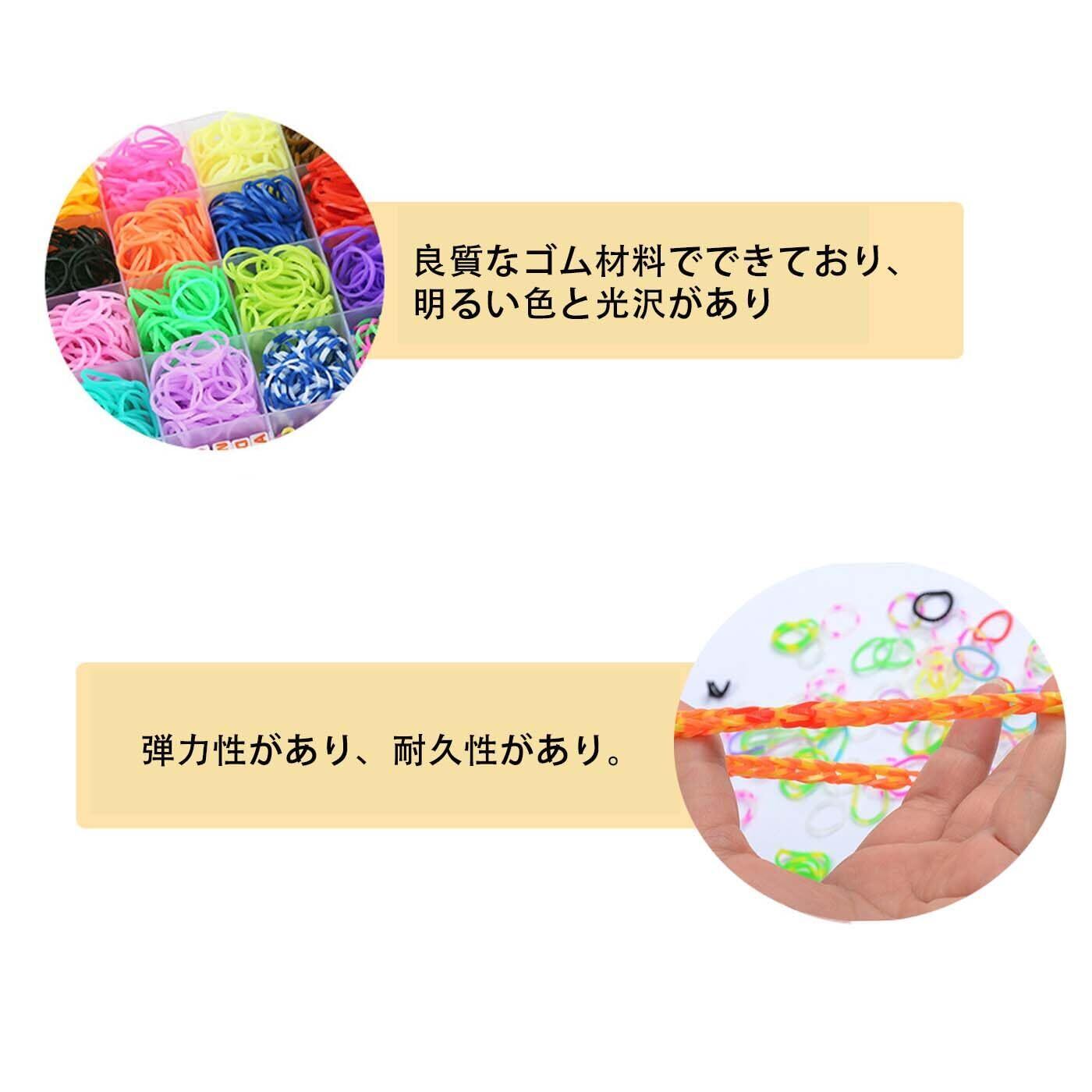 【子供の成長に有利】子供向けの手作りアクセサリーセットで、40 グリッドのスーツにはカラフルな虹色のゴムバンドが豊富に入っています。織機バンドキットを使って、簡単にブレスレットやネックレスを作ることができ、おもちゃとして楽しむと同時に創造力を養うことができます。