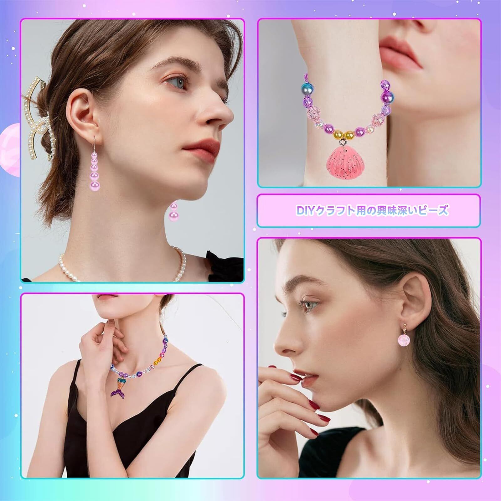 【創造性と相互作用】マーメイドブレスレット作りキットには、子供たちの創造性と想像力を刺激し、育てることができる明るい色のビーズがたくさんあり、子供たちが自分の努力でブレスレットやネックレスを作ると、強い自信と達成感を感じるでしょう。子供のためのブレスレットジュエリーキットは、大人と子供が一緒に作ることができます。