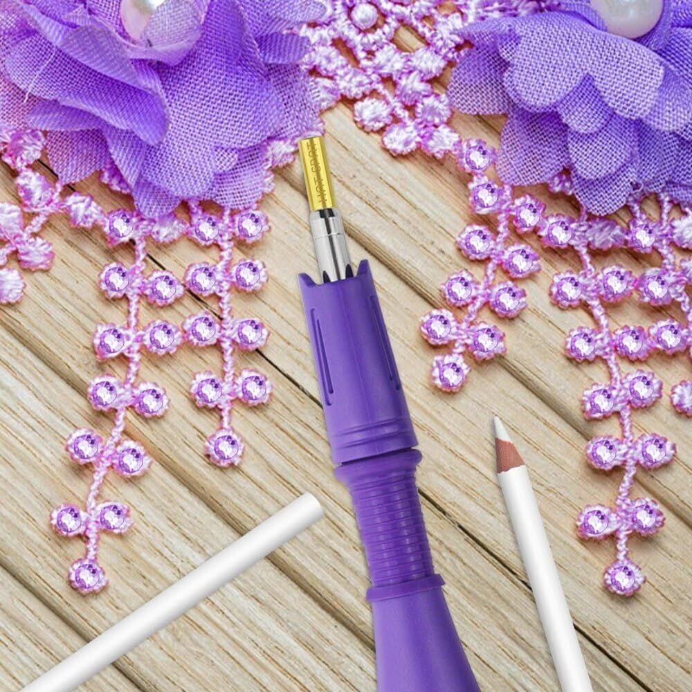 ホットフィックス ラインストーン アプリケーター ツール DIY ワンド セッター ツールキット 7つの異なるサイズのチップ ピンセット & ブラシクリーニングキット 3パック ホットフィックス クリスタル ラインストーン (パープル)