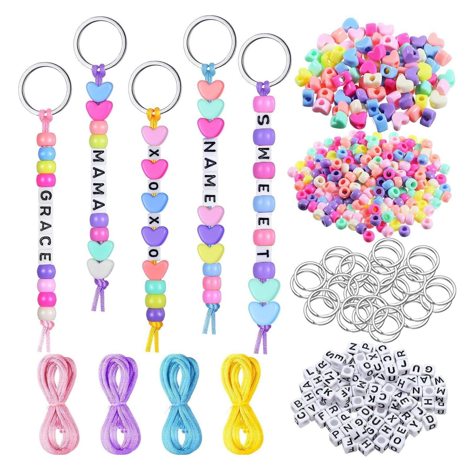 1. 【DIYビーズなキーチェーン】566個の豊富なパーツセット(アルファベットビーズ・ハートチャーム付き)で、推し活グッズやマイブーム用キーホルダーを自由に作成可能!「推し名入れ」「お揃いアイテム」も簡単に作れる高コスパ設計で、家族・友達とシェアできる満足感。