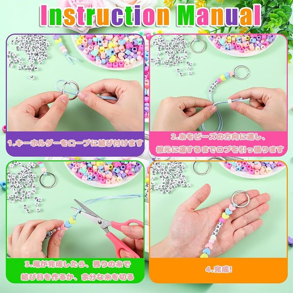 1.【DIYキーホルダー手作りキット】当店の285点入りDIYキーホルダーキットは、美しい装飾品を作るための創造的なニーズに応える多彩な素材を揃えています。様々なアルファベットビーズやカラフルなビーズを使って、キーホルダー、ブレスレット、ネックレスを作れます。例えば「love」「graduation」「dad」といった言葉や、自分へのメッセージ、お祭り名など、意味のある言葉を表現できます。 2.【充実のパッケージ内容】本ビーズキーホルダーキットには、金属製キーリング6個、紐4本、アルファベットビーズ150個、カラフルビーズ100個、ハート型ビーズ25個が同梱。多様なニーズに対応し、キーホルダーやアクセサリー制作において創造性と芸術的自由を発揮し、より面白いアイデアを生み出せます。 3.【簡単に作れる】ビーズは簡単に作れて糸に通せるので、お好みの単語をつなげて完成させられます。当社の文字ビーズは自由に回転させ、様々な面白い単語に形作れます。DIY活動に参加するプロジェクトに活用でき、分類ゲームやビーズ作業を通じて知覚運動能力を向上させます。人々が共有する教育的体験を提供する理想的な機会となります。 4.【高品質素材】当キーホルダーキットは創作ニーズに応える厳選素材を採用。金属製キーリングは頑丈で耐久性に優れ、作品の長寿命を保証。付属プラスチックビーズは丈夫で魅力的、作品に鮮やかな色彩と立体感を添えます。 5.【多機能な装飾用途】単なるキーホルダーだけでなく、当DIYキットで可愛いハンドバッグやリュックのチャーム、クリスマスパーティーの装飾品、贈り物用アクセサリーも制作可能。友人や家族と共有し、クリスマスに集まって手芸を楽しむことで、温かな休日の雰囲気を演出できます。