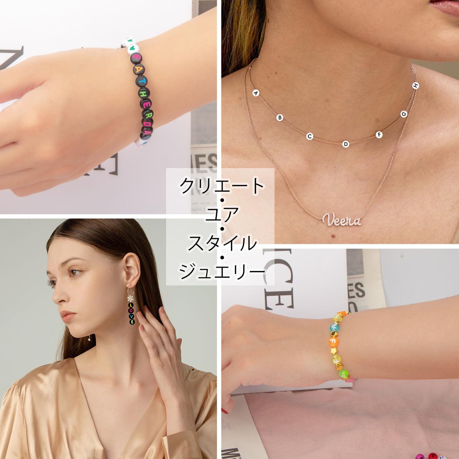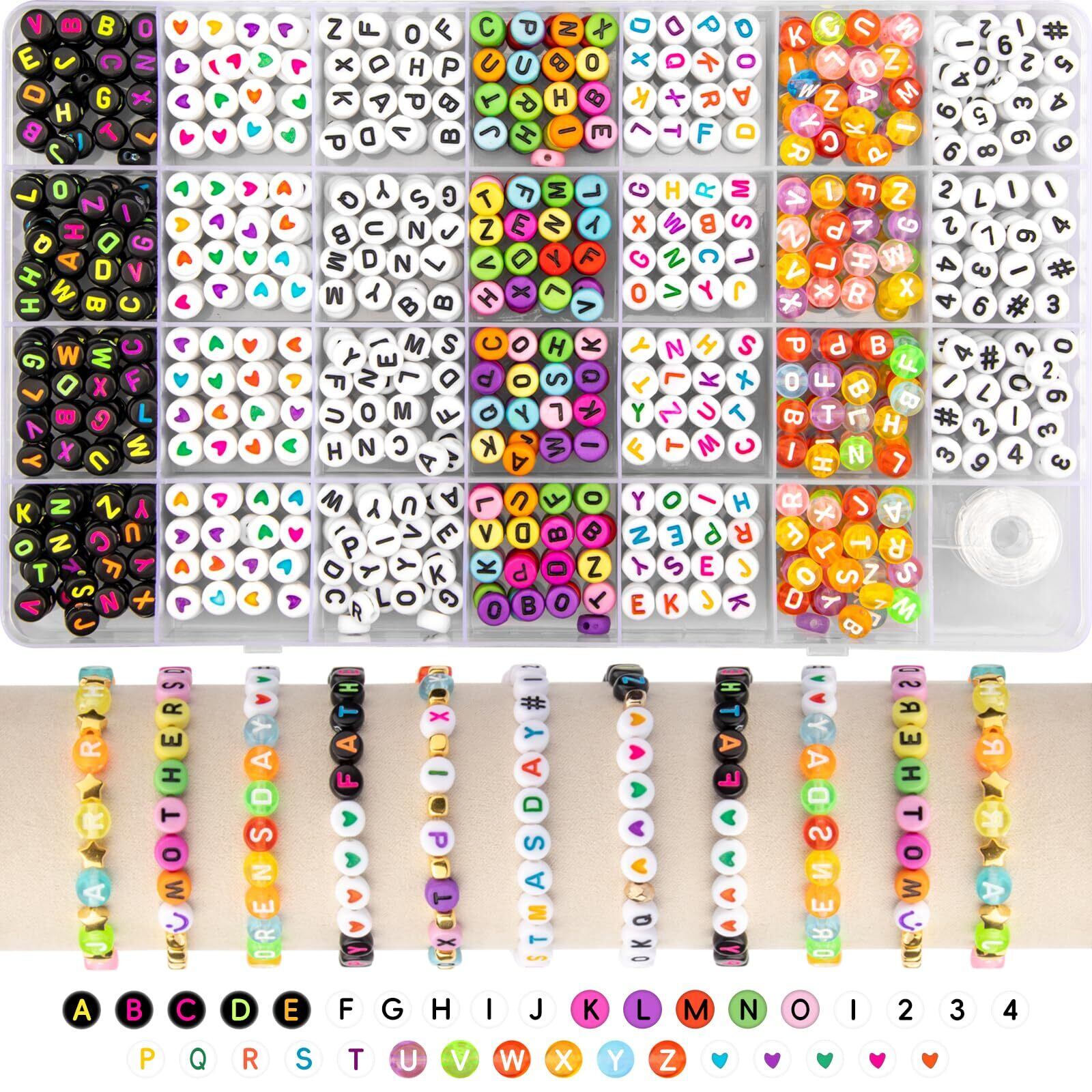 ブレスレット作成用1350Pcsタングステンビーズ4x7mmアクリルビーズブレスレット作り用品用のA-Zアルファベット ビーズ ビーズ パーツブレスレット パーツ