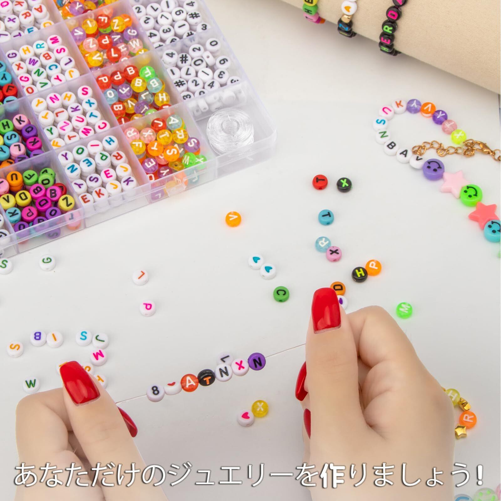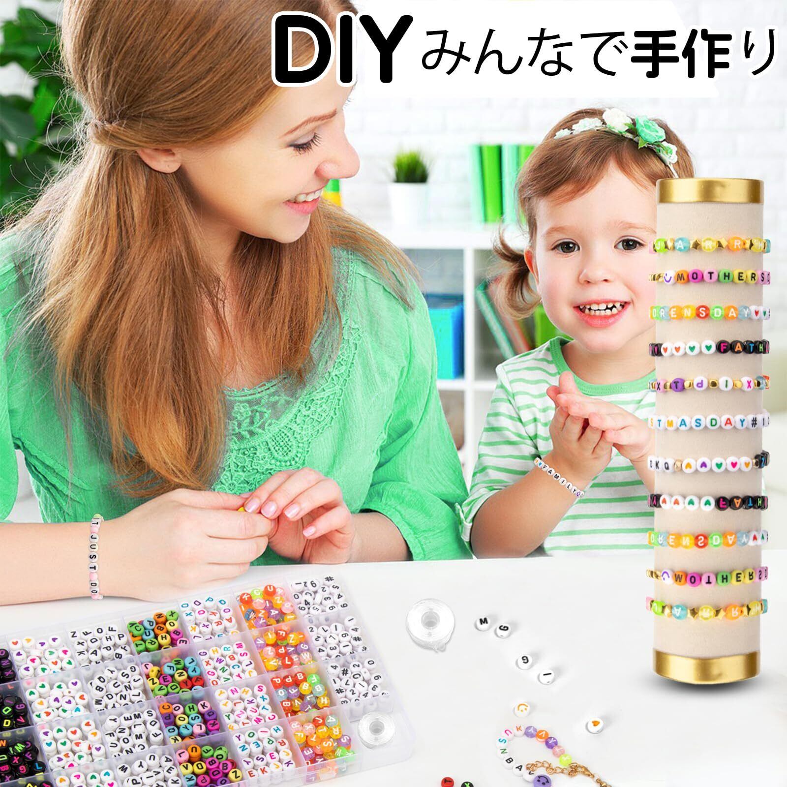 【高品質ビーズキット】各繊細なパターンの文字ビーズはアクリル素材でできており、高度な塗装とサンディング技術により、ビーズの表面が滑らかになり、ビーズの穴がきれいに整頓されます。完璧なハンドメイド作品を作ることができます。